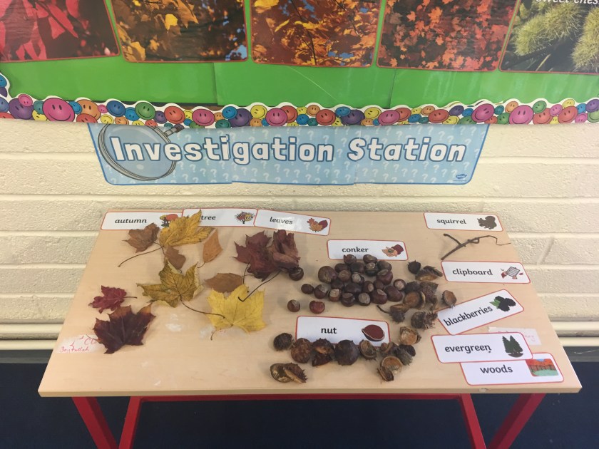 Can you believe it’s October already? Here in Junior Infants, we are celebrating all things Autumn and our investigation table is quickly being filled with crunchy autumn leaves, pine cones, conkers and some amazing artwork of squirrels and leaf art by the boys!