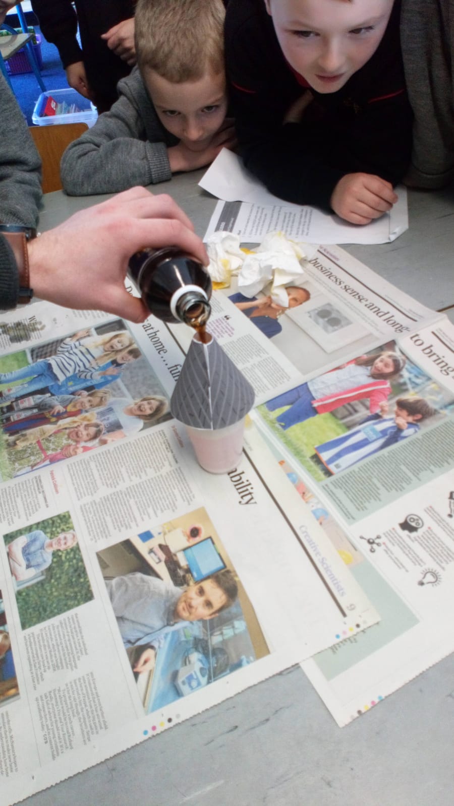 Third Class have been learning about volcanoes. We decided to try to make our own volcanic eruption using water, food colouring, washing up liquid and vinegar. We had a great time working together in groups to produce these eruptions!