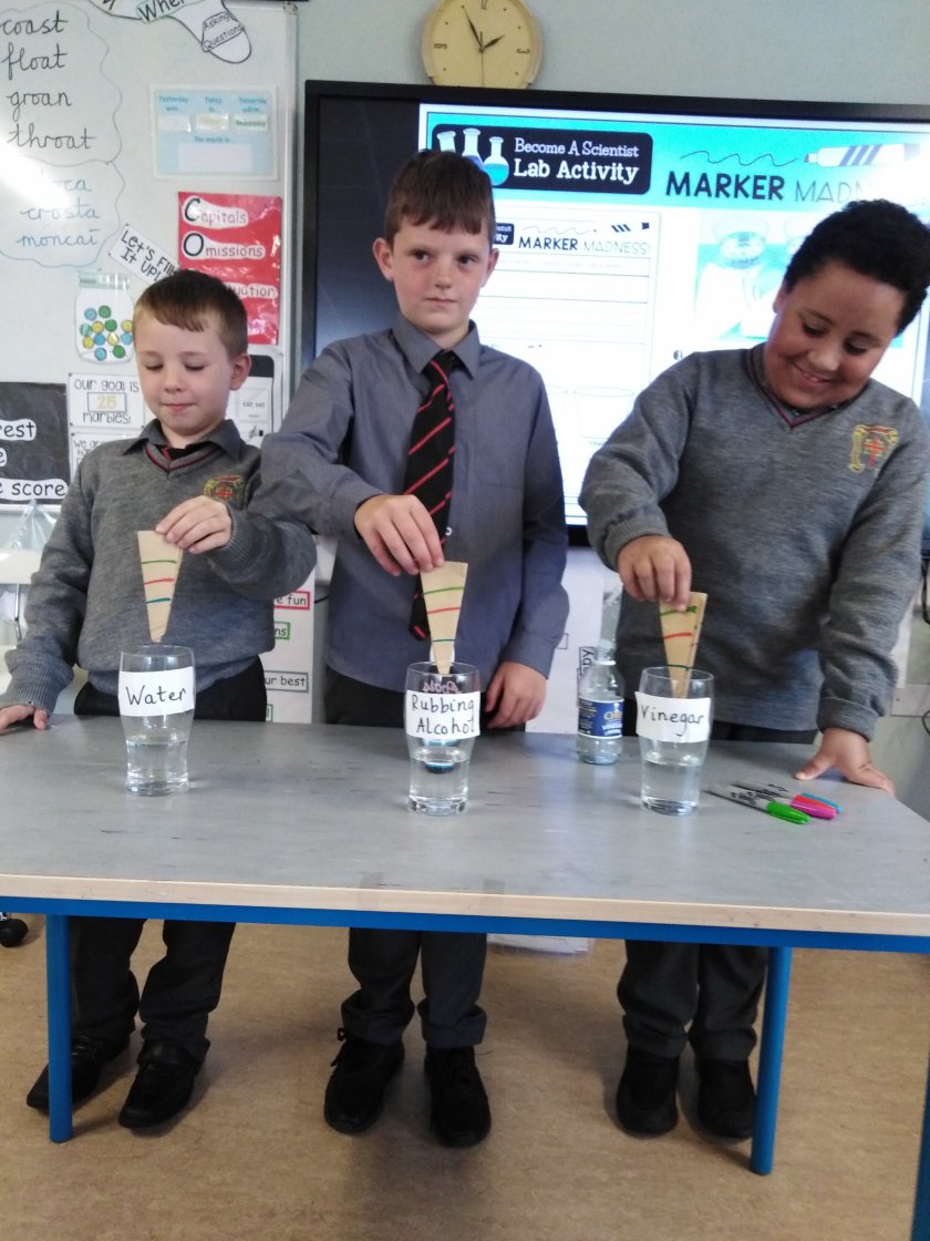 Science has been the flavour of the month in Miss Mangan’s 3rd class. The boys have been carrying out experiments such as the cookie dunk (buoyancy, sinking, floating) and marker madness (solubility). The highlight however would have to be the designing of their very own parachutes. We tested them out last Friday ( special thanks to Mr. Murphy who very kindly allowed us to use his room). Well done to all the boys for making such a huge effort. I’m very proud of each one of you. Here’s to the new scientists of the future.