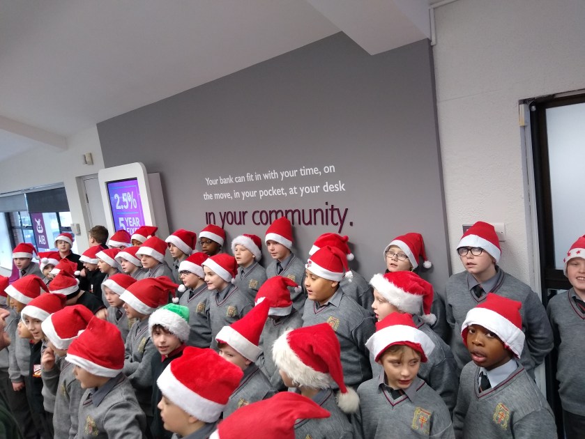 The boys from third and fourth were singing in AIB Bishopstown. Thank you to the boys and their teachers were their wonderful efforts.