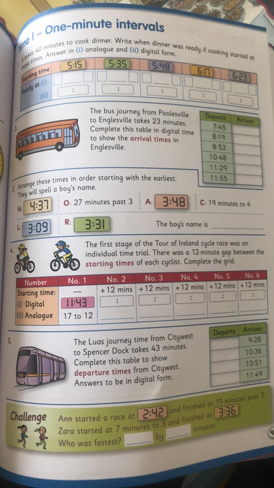 Friday: Time to apply time in some real-life situations. Here are some timetable activities. Have a go at them, the answers are also attached.
