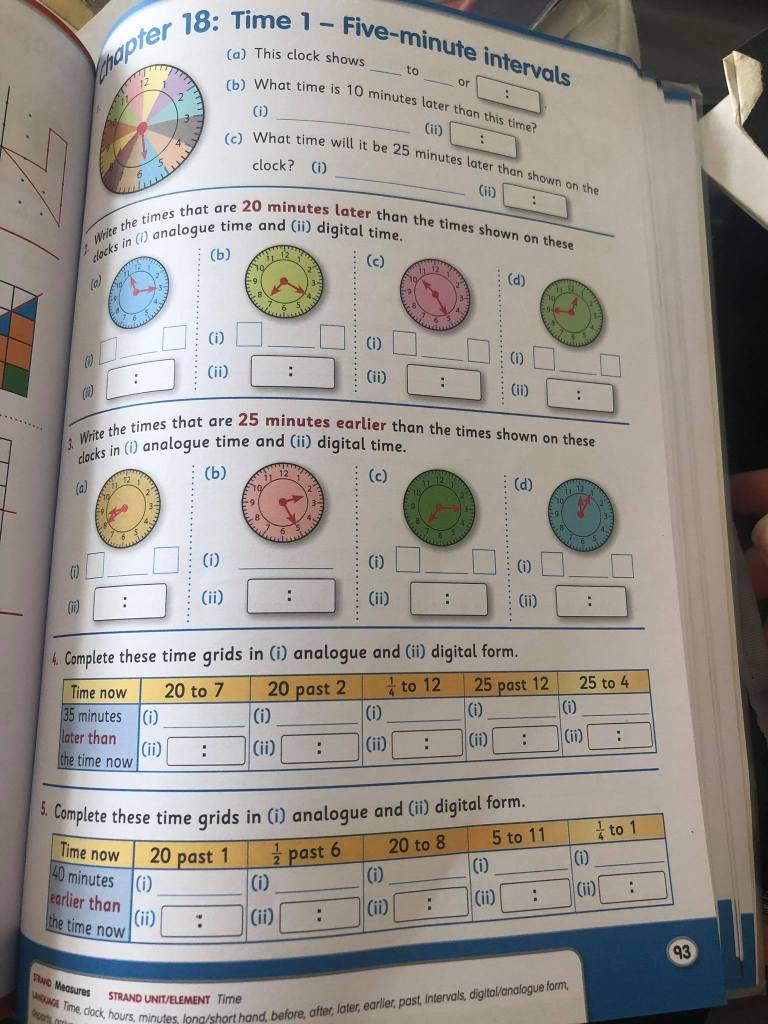 For the coming week focus on the clock. Begin by revising 5-minute intervals on the clock face. Every number on the clock face represents a 5- minute interval. the big hand shows minutes, the small hand shows hours. With analogue time, the numbers 1-6 reflect ‘minutes past’ the previous hour while the numbers 7-11 are referred to as ‘minutes to’ the next hour’. 12 refers to ‘o’clock’. Below are a useful powerpoint to revise this and a page of activities.
