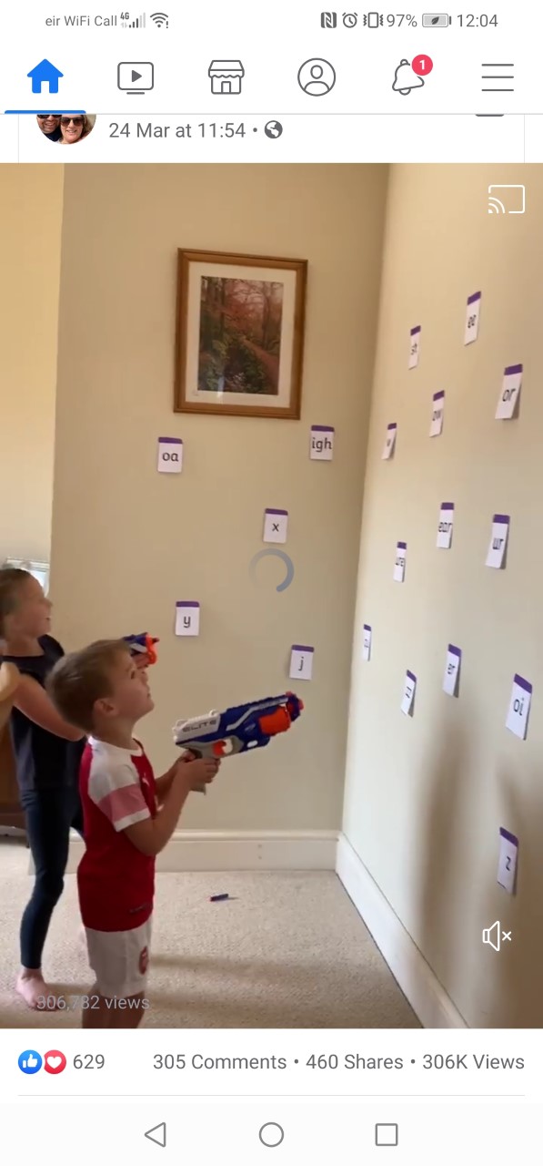 - Keep revising all letters and sounds. Repetition is very important! See attached game, write out or use sound cards and put them on a surface, you child can tap the sounds as you call them, or use it for spelling words.