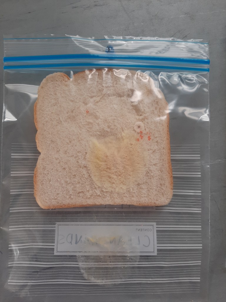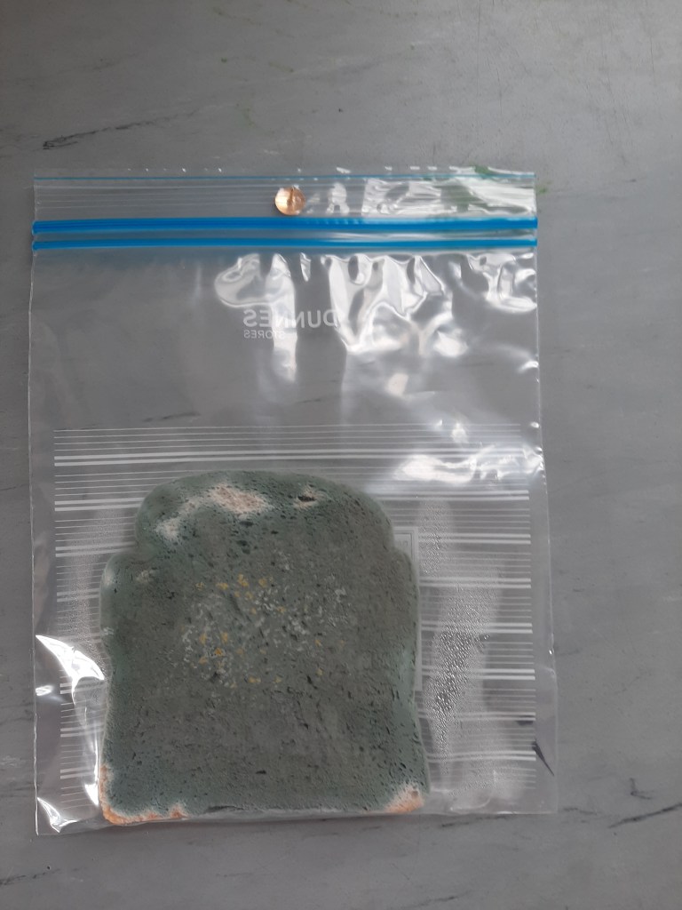 - Finally, we took a slice of bread straight from the packet and put it in a sandwich bag. Nobody touched it so it was marked as the ‘control’ slice.