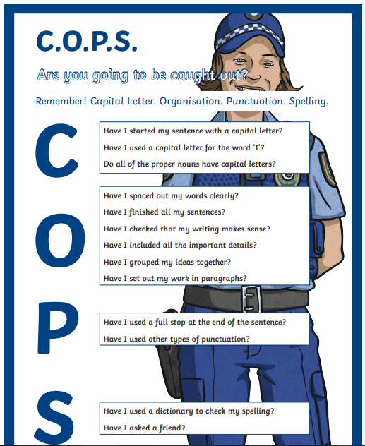 Don’t forget to use COPS (Capitals, Organisation, Punctuation & Spelling)