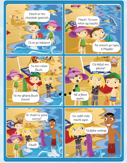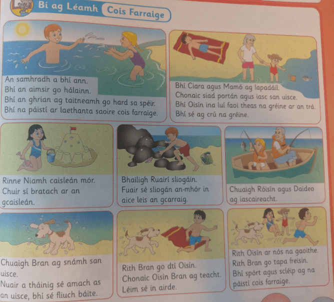 Read the story Cois Farraige again. Become familiar with the words and their sounds.