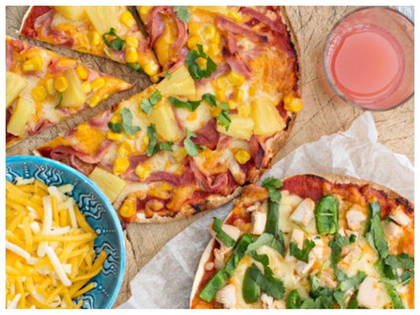 - You can add any topping you like. Ham, sweetcorn and pineapple are a lovely combination as are chicken and peppers.