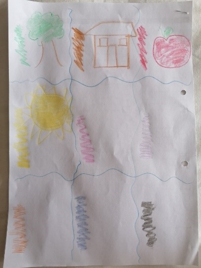 - Colour Hunt Activity: With the help of an adult, draw out a grid like below. Go around your house, or even better, go outside and draw what you can see to match each colour. E.g. draw item to match each colour- grass for green.