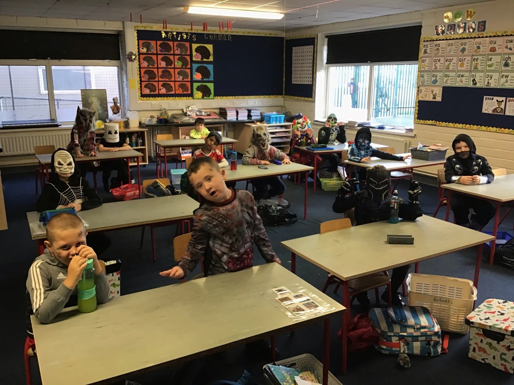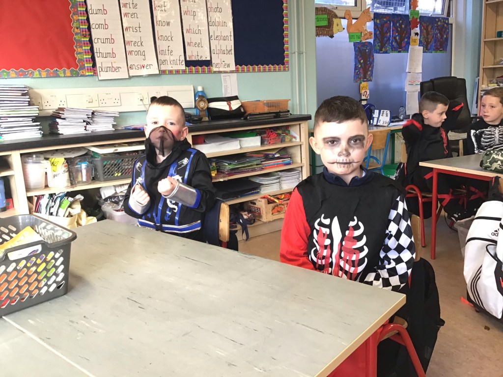 Halloween has arrived in Togher Boys’ NS! We are very impressed with the costumes the boys have put together for today. Huge congratulations to the winner of our school Halloween raffle, Ibrahim (Ms. Hurley, Junior Infants). No doubt the boys are looking forward to a well earned week’s rest during their mid-term break. Finally, the school would like to thank all of the boys and their parents for their co-operation and support over the past couple of months. We look forward to welcoming the boys back on November 2nd.