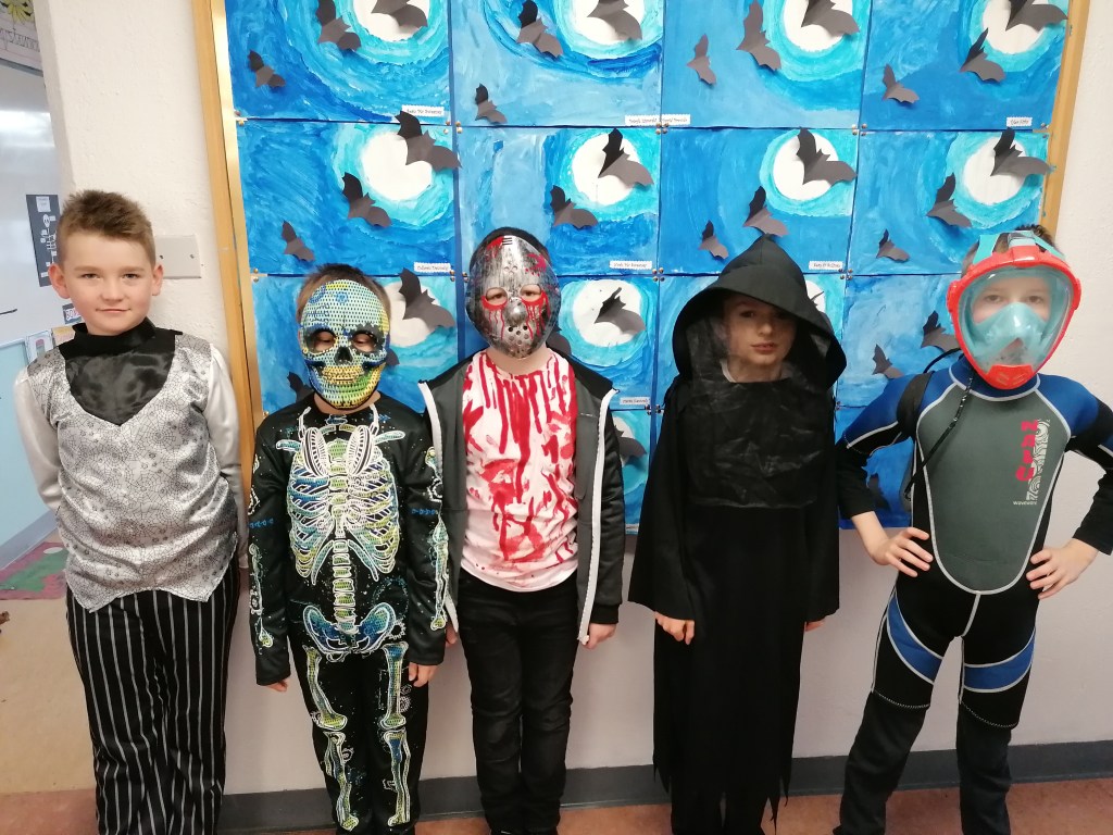 The boys in my class did such a good job of scaring me this morning. What a huge effort everyone made. We have enjoyed doing such great activities during the month of October, including a Halloween brain surgery experiment, bat silhouette paintings, a witches brew poem and a lesson about the skeletal system to name but a few. The boys should be so proud of all their hard work this term and I hope that everyone enjoys their well deserved Halloween break.