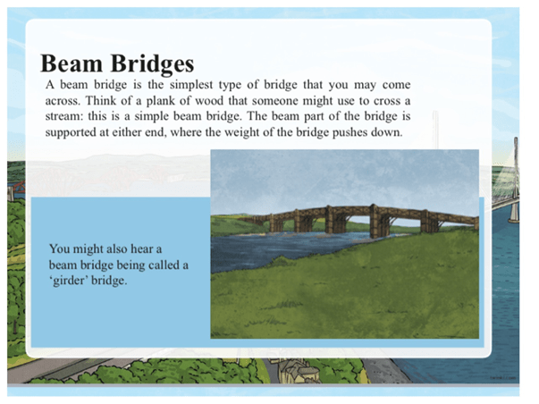 We looked at different types bridges from around the world. We discussed the shapes, designs and materials used in Beam, Arch, Truss and Suspension Bridges.