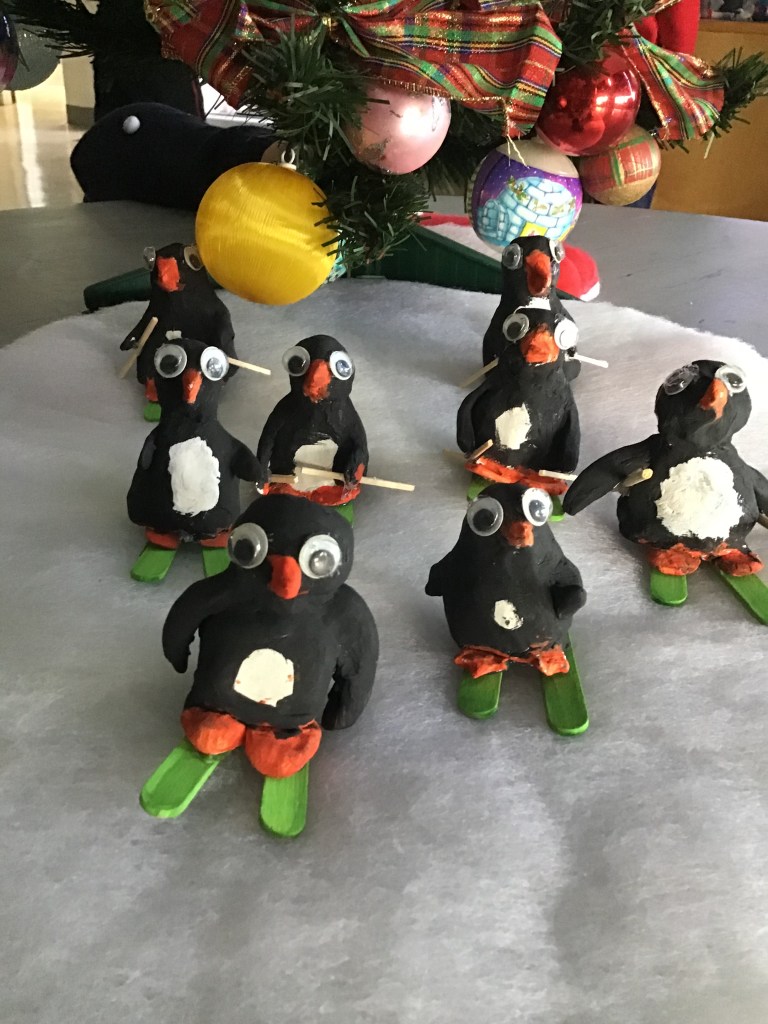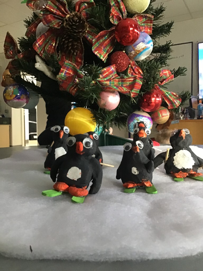 The boys in Coiscéim have been busy making some Christmas art. We learned all about penguins and decided to make some of our own out of clay!