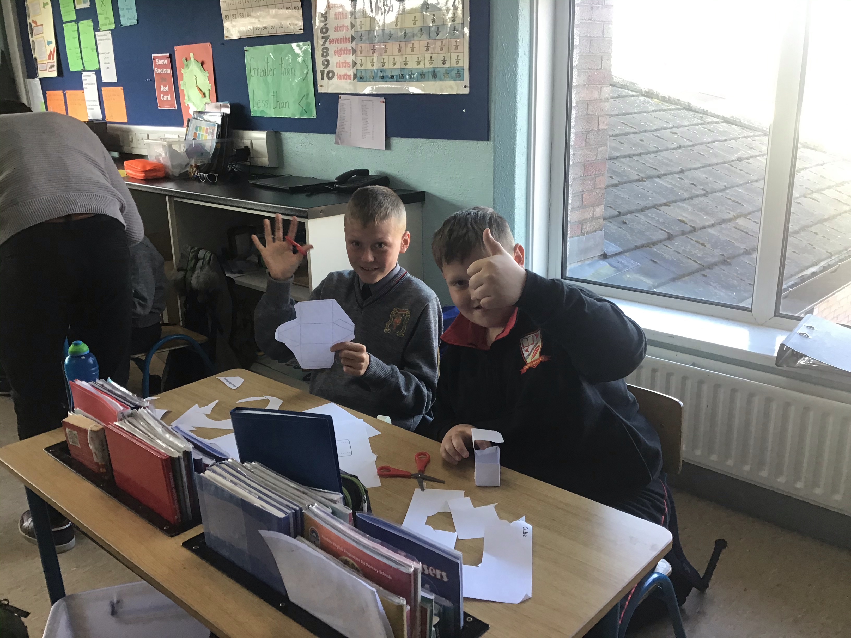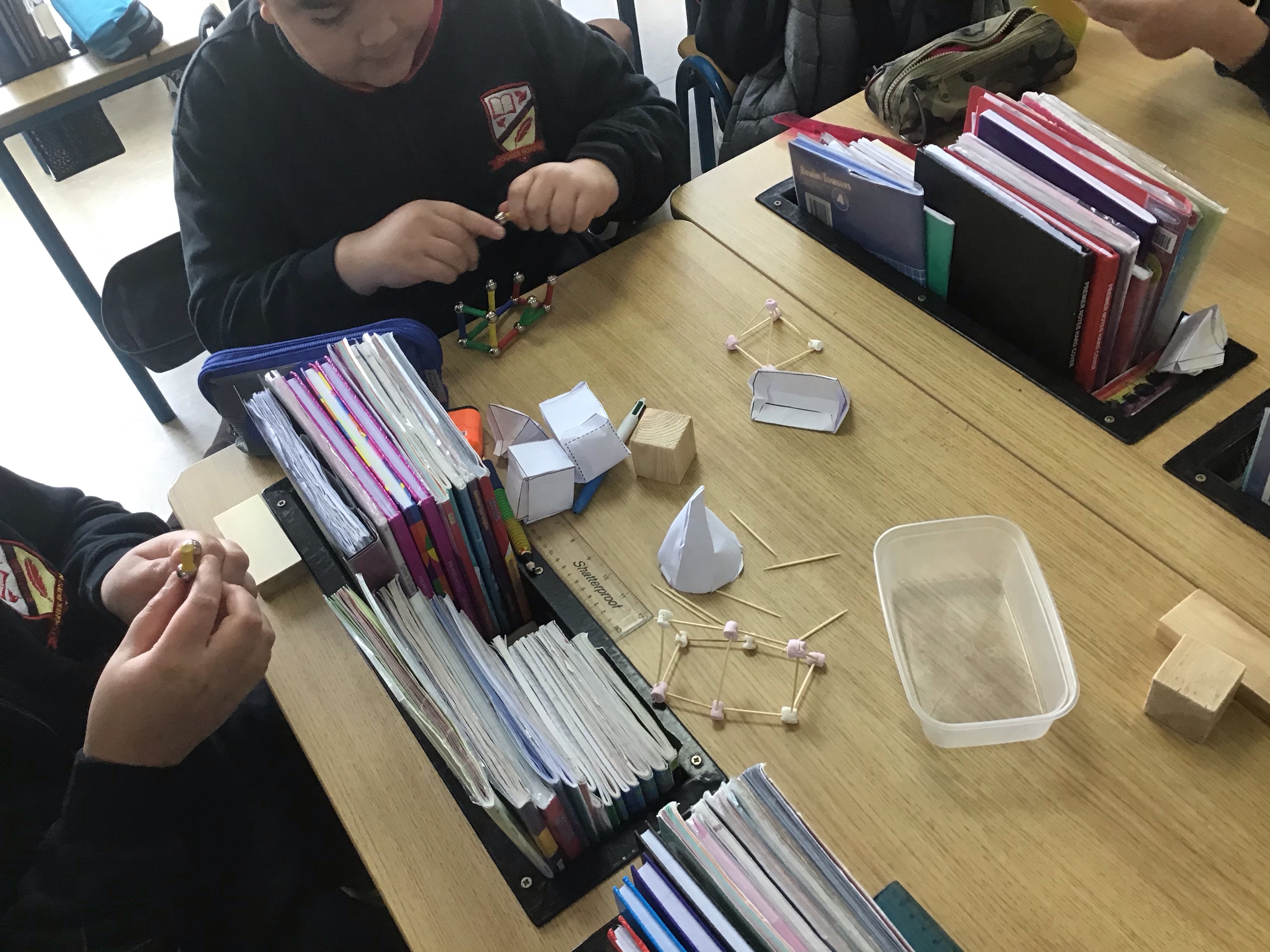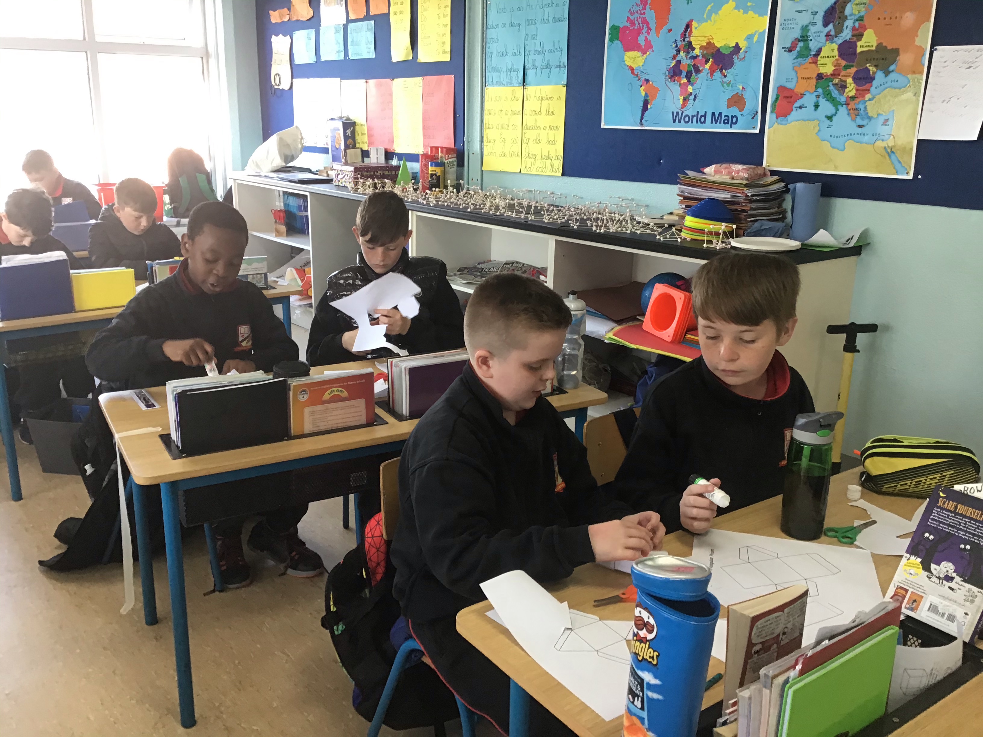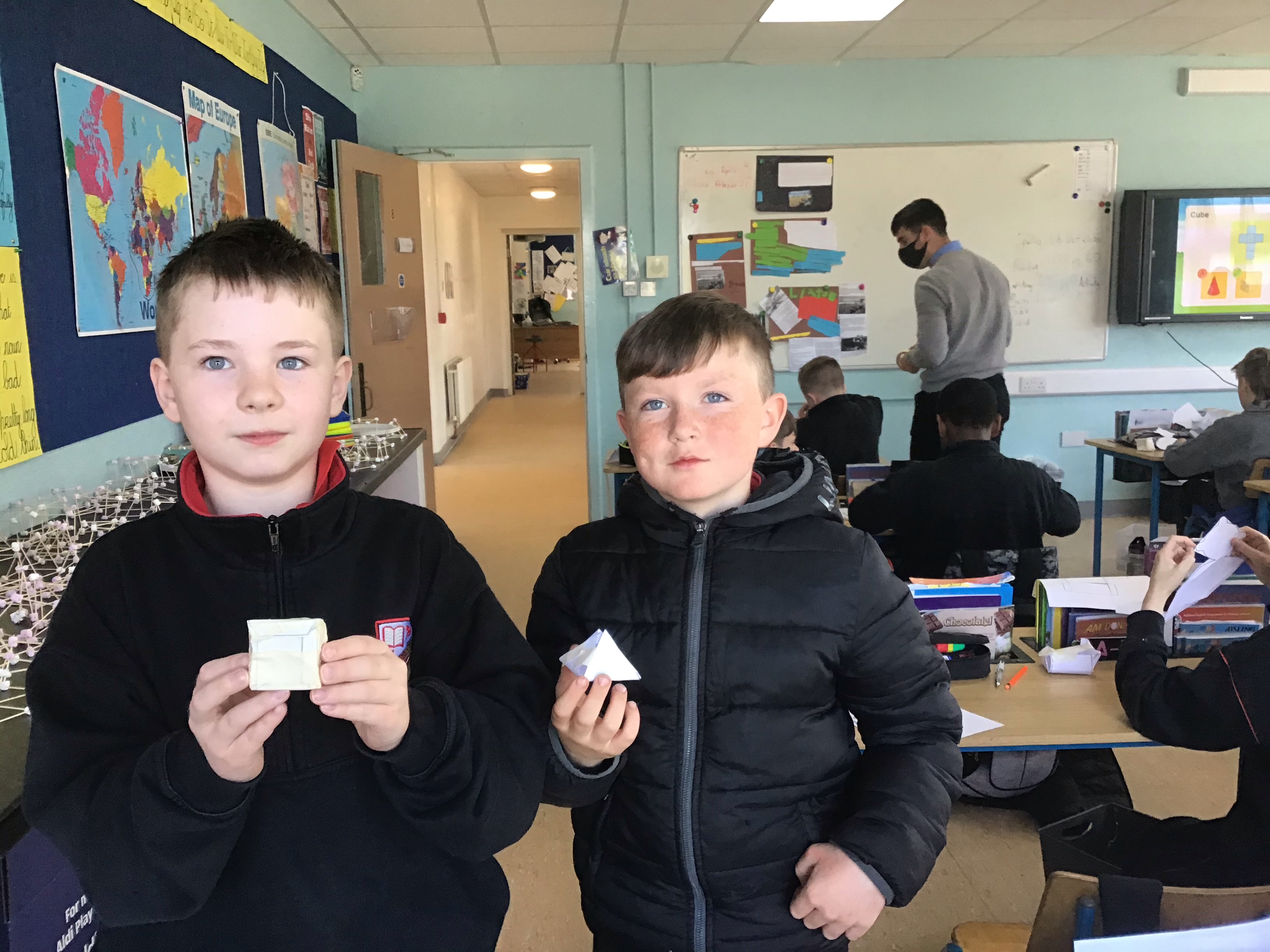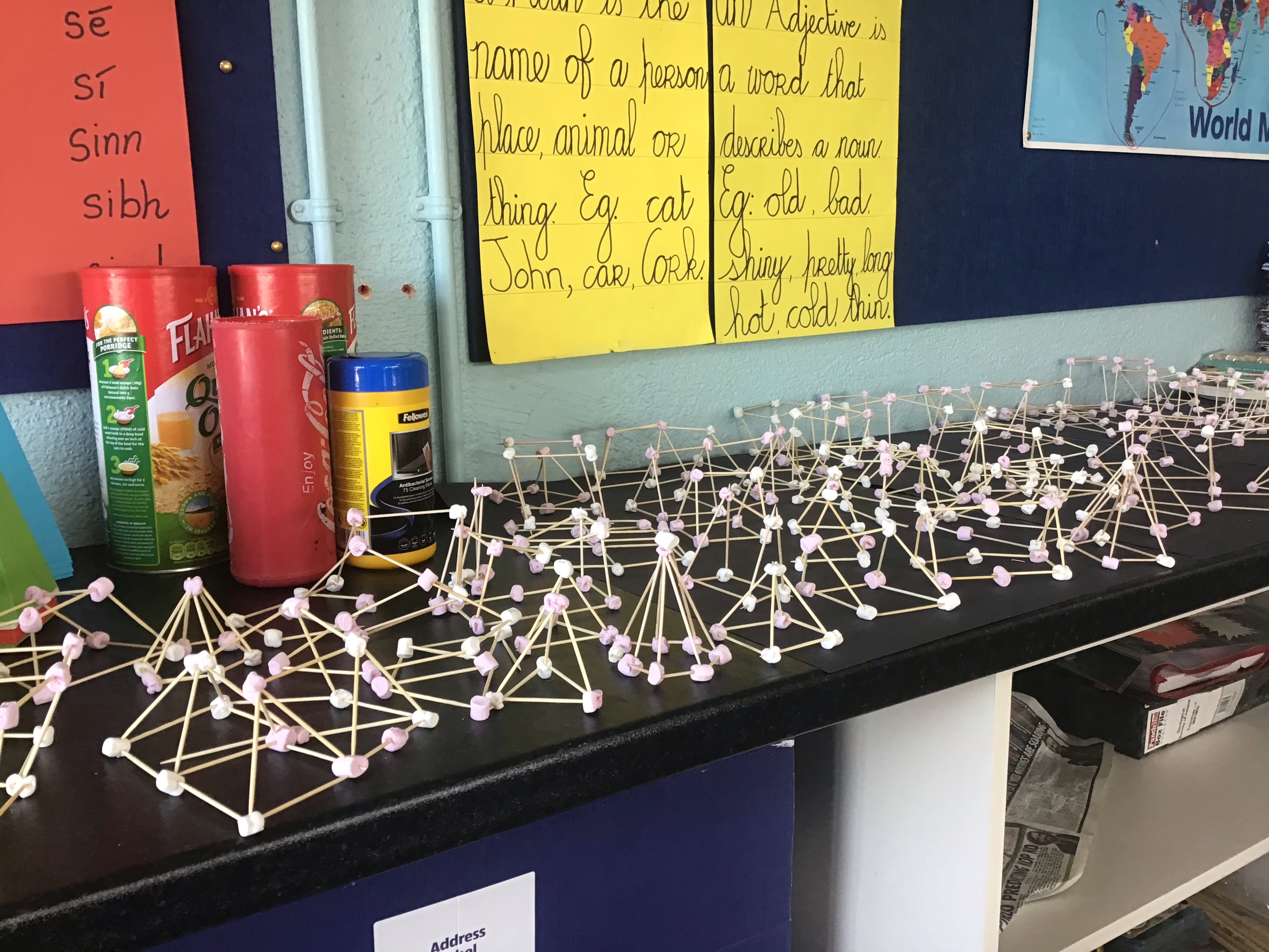 3D shapes was this weeks maths topic in 4th class. The lads worked very hard with Mr Collins and Mr O’Shea and got great hands on experience. Here are some of the 3D shapes they constructed using marshmallows, cocktail sticks and Geomag as well as the nets they put together.