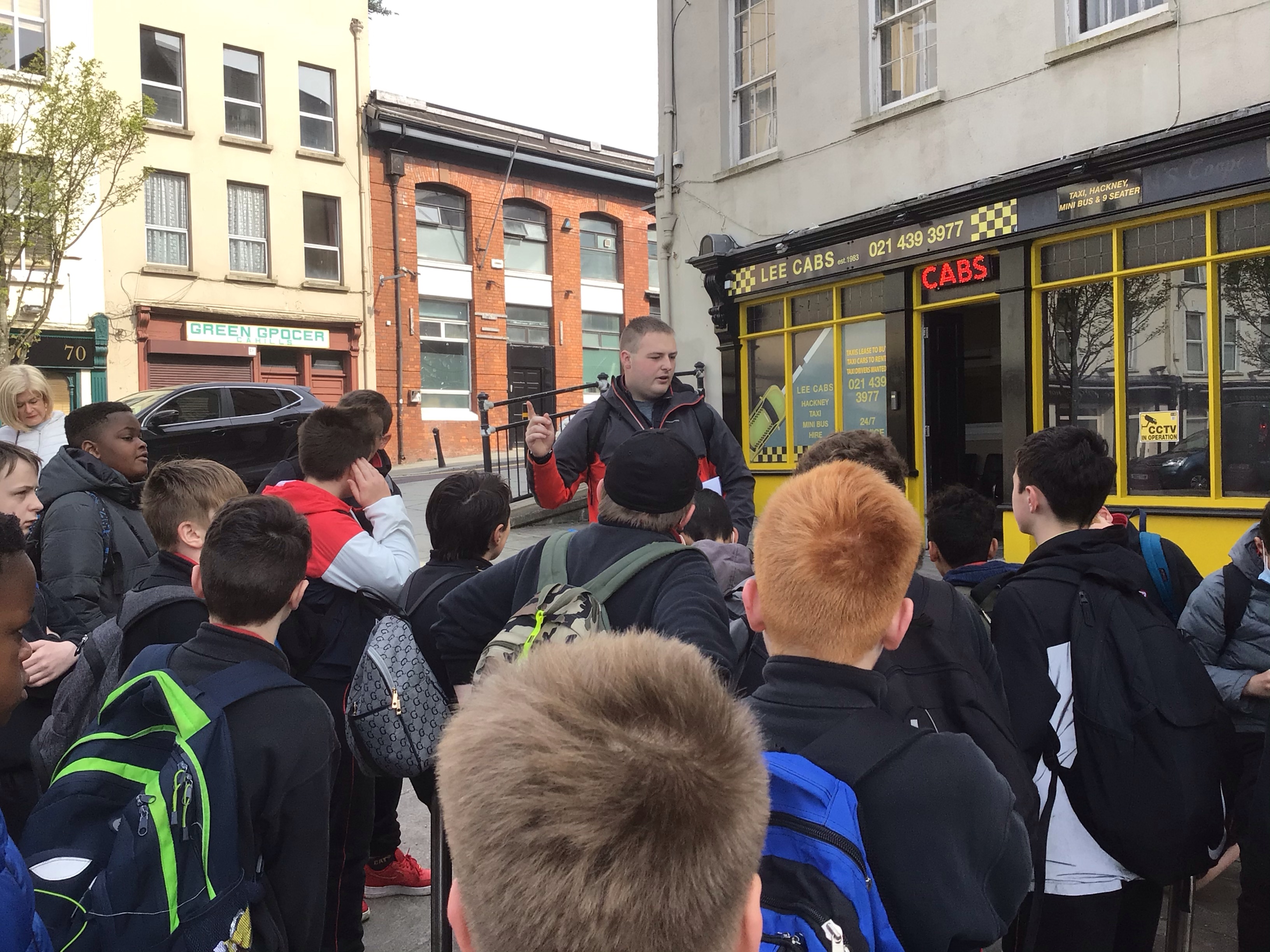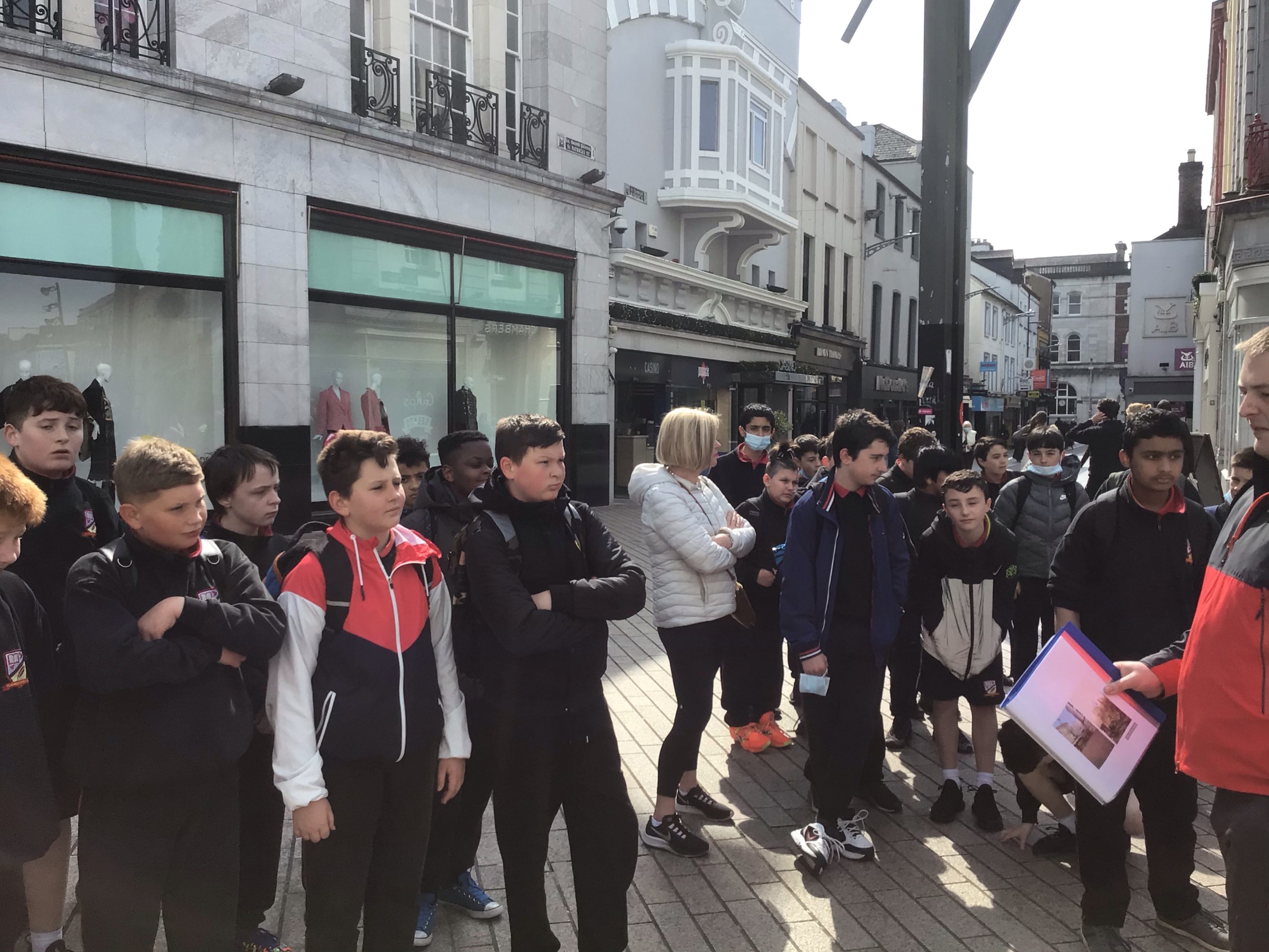 Last Friday, April 23rd was a beautiful sunny day. We were blessed with the weather as we set out to walk to town to meet our tour guide, former past pupil Adam Duggan.