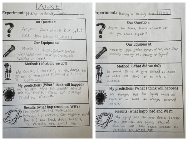 Density is a foundational concept in science, which explains why boats float, rocks sink and balloons fly away when you let go of them. With just a few materials from home the boys conducted their own colourful density experiment and saw how this principal works first hand.