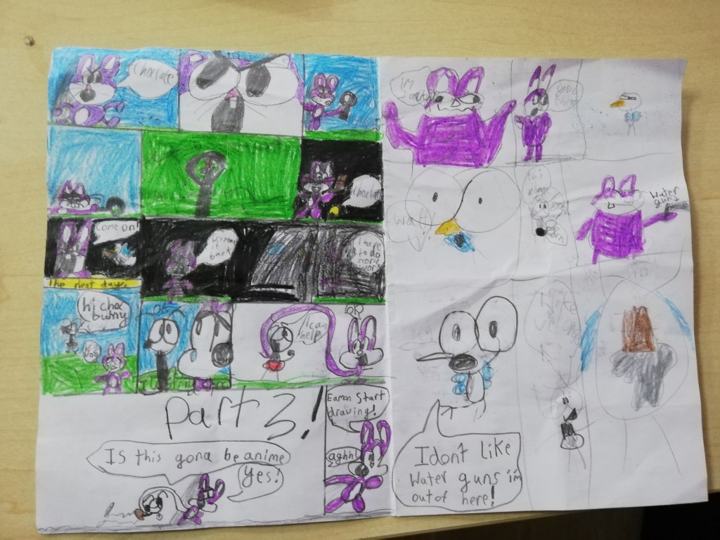 My name is Matt and with my two friends, Eamon and Ben, we made The BOOM Comic. It’s a comic strip of characters and stories we made. There are three comics right now but with more to come. One of our main characters, The Chocolate Bunny, also has a video game I made using Scratch and he will be getting his own movie soon.