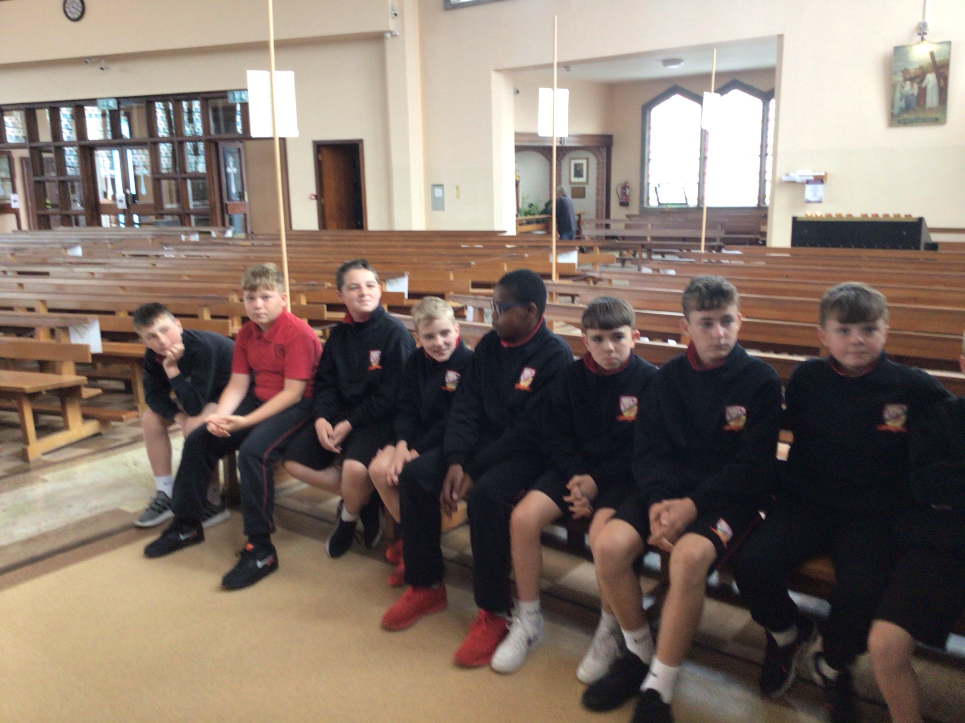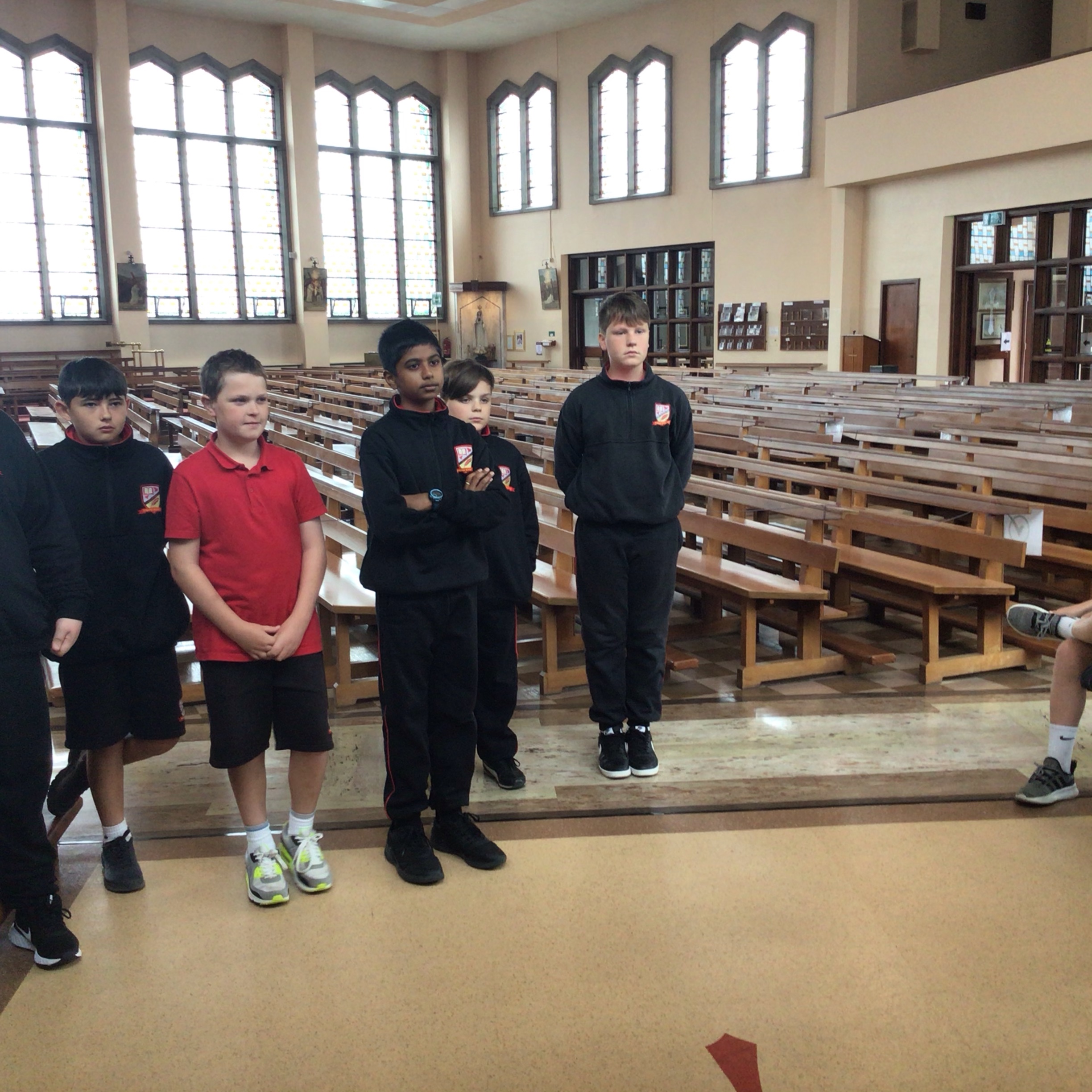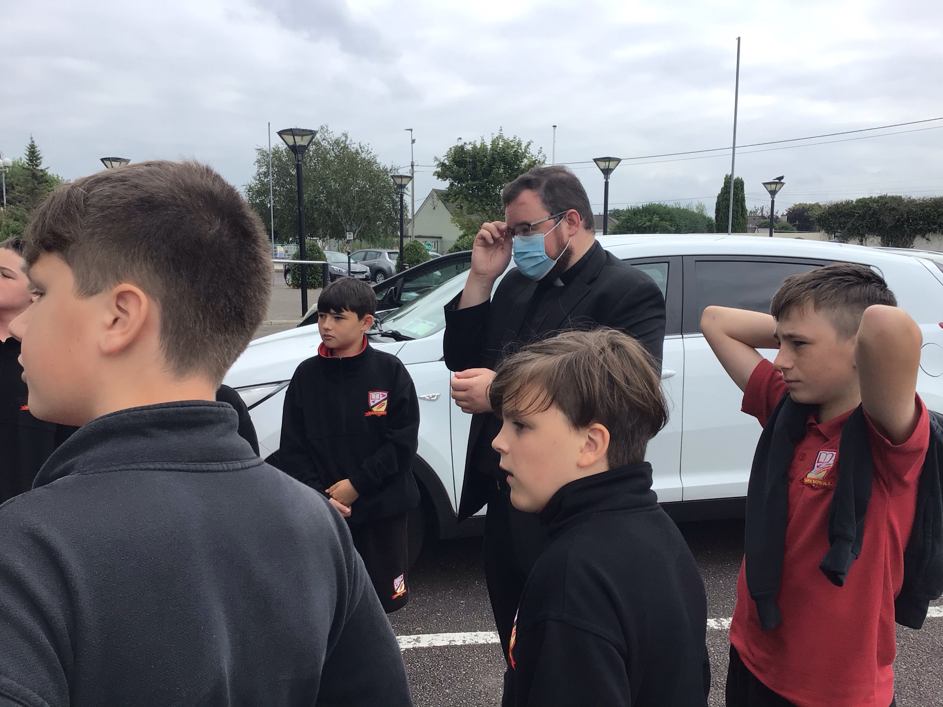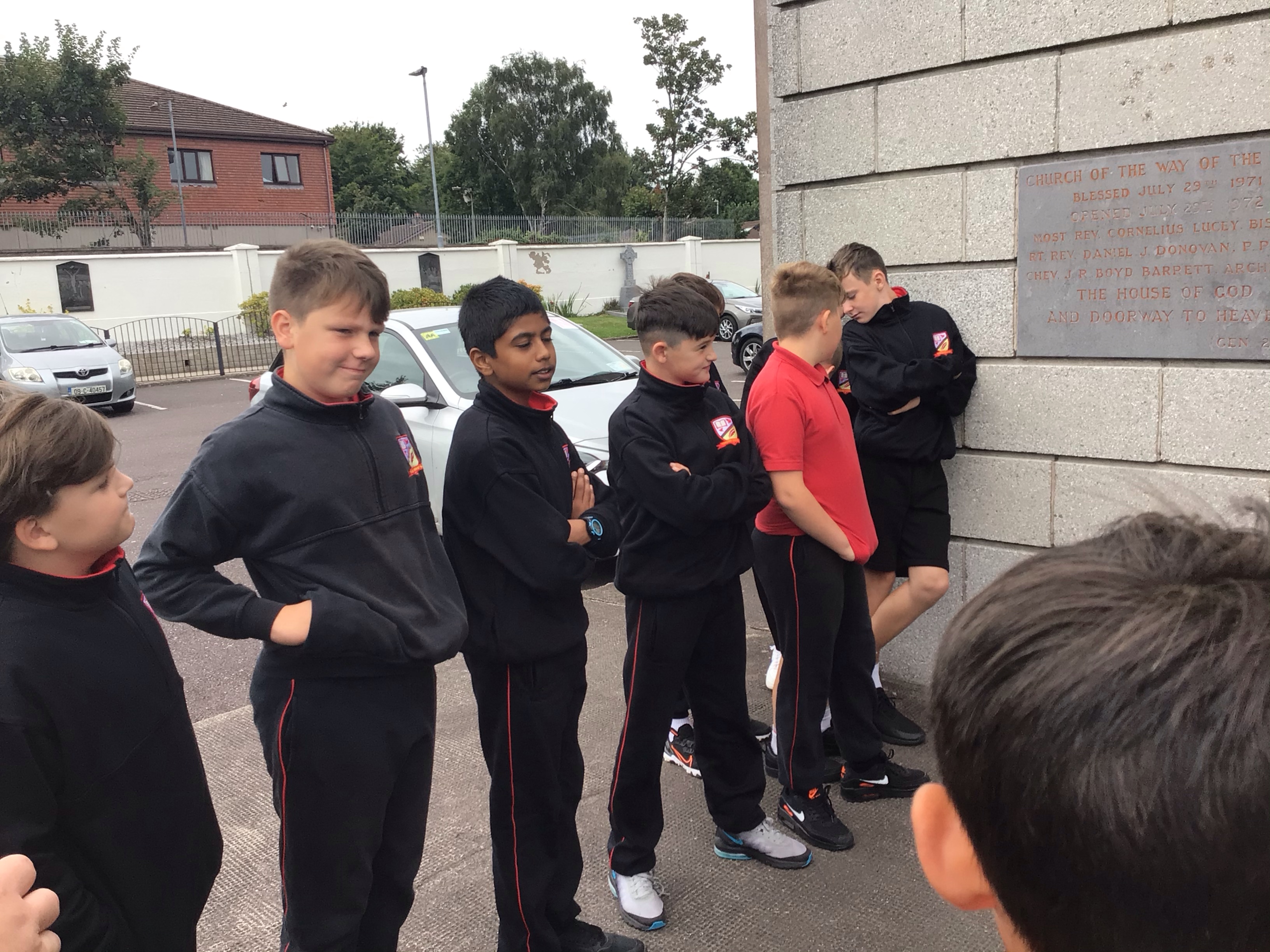 On Tuesday sixth class paid a visit to the church to meet Fr.Ben. We are beginning our preparation for receiving our Confirmation later this school year and we received a very warm welcome from Fr. Ben .We commenced our visit by gathering at the corner stone on the wall of the church where we noted that is is now fifty years since this stone was laid . This is a significant year for our parish and we are going to undertake a project on the beginnings of our special parish.