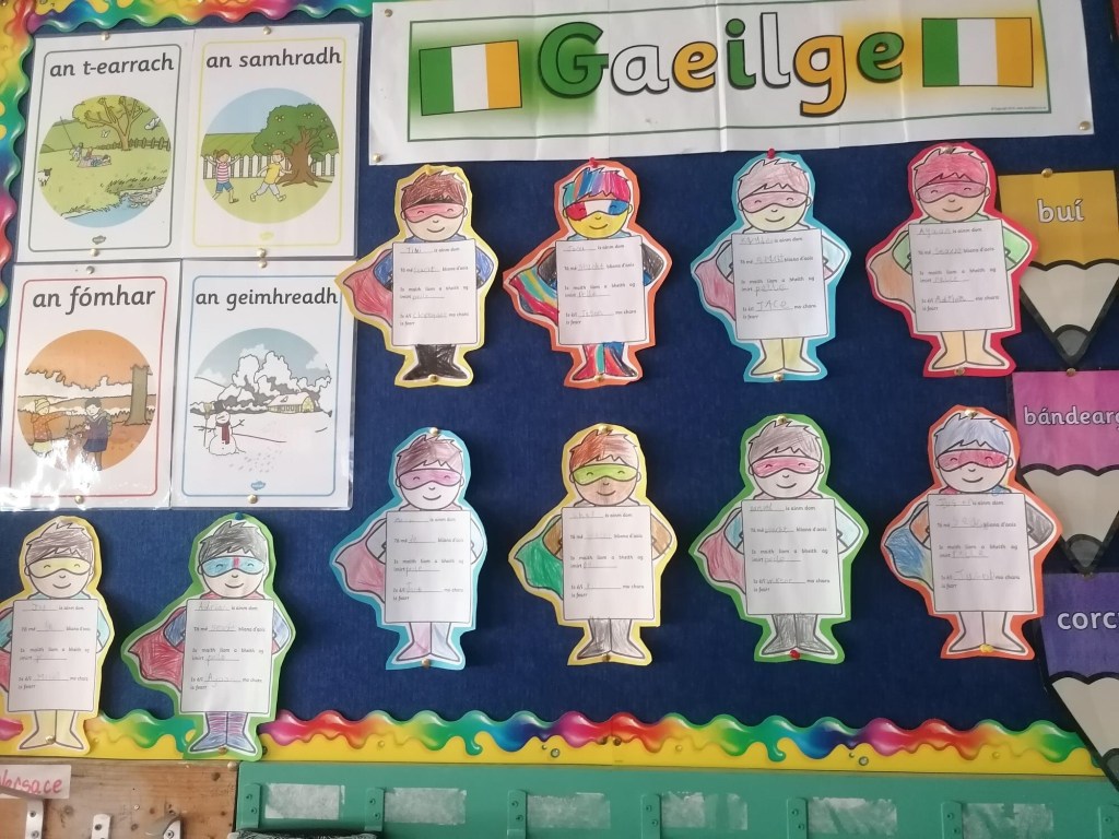 I am so proud of the work the boys have been doing in 1st Class this month. I am such a lucky teacher to have such wonderful boys in my class. Here are a few of the topics we have been covering this month; Autumn writing for our classroom display, learning all about musical instruments (including the scale of 8 notes) and composting. It’s been a busy month here in 1st Class. A huge congratulations to Buachaill na Seachtaine for this month. Your teacher is so proud of you. Well done.