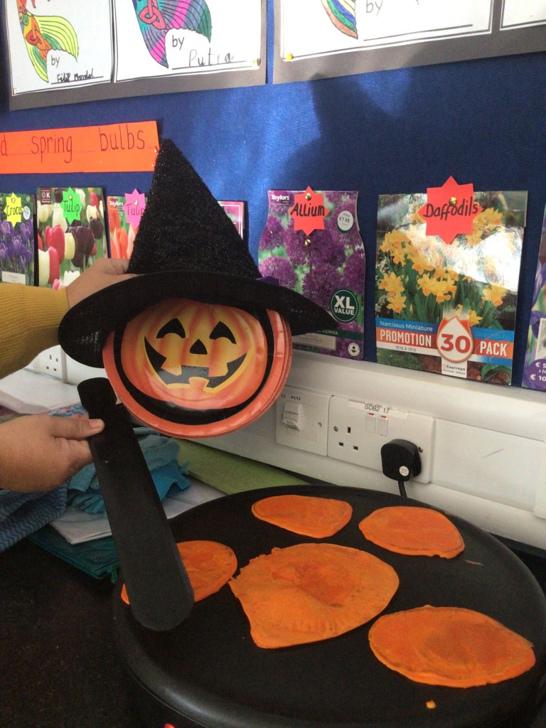Ms O’Connor’s 4th Class boys were busy today mixing, stirring, cooking and eating their delicious pumpkin pancakes. Give them a go at home!