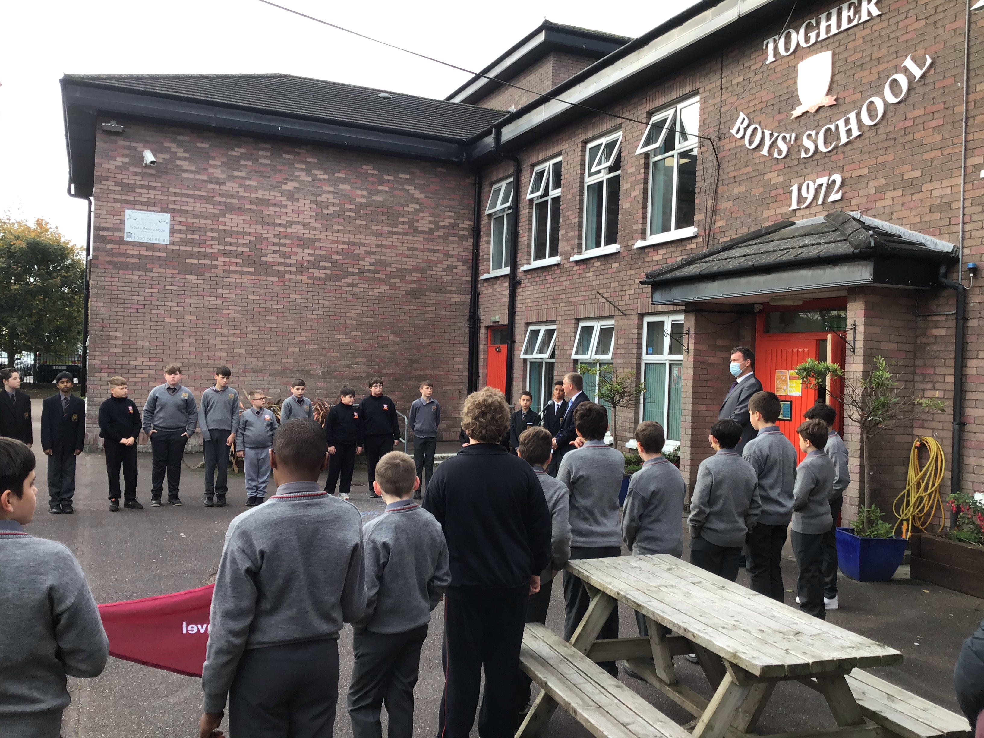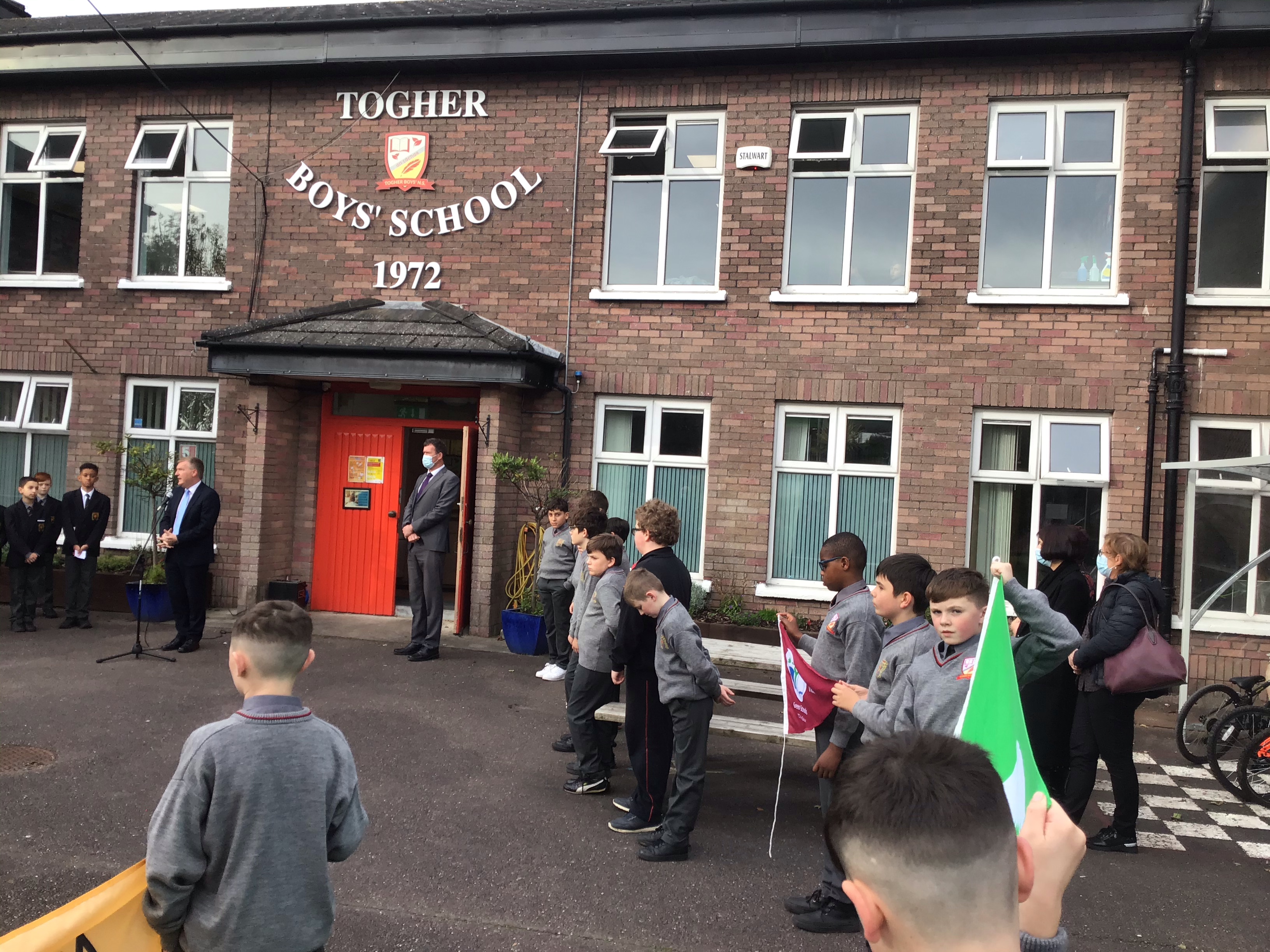 Friday November 5th was a special day for us all in Togher Boys. TD Michael McGrath was on hand to raise the new Green Flag for transport and the Amber Flag for mental health. Congratulations to the teachers and students involved in these committees and to the whole school for fully embracing both initiatives.