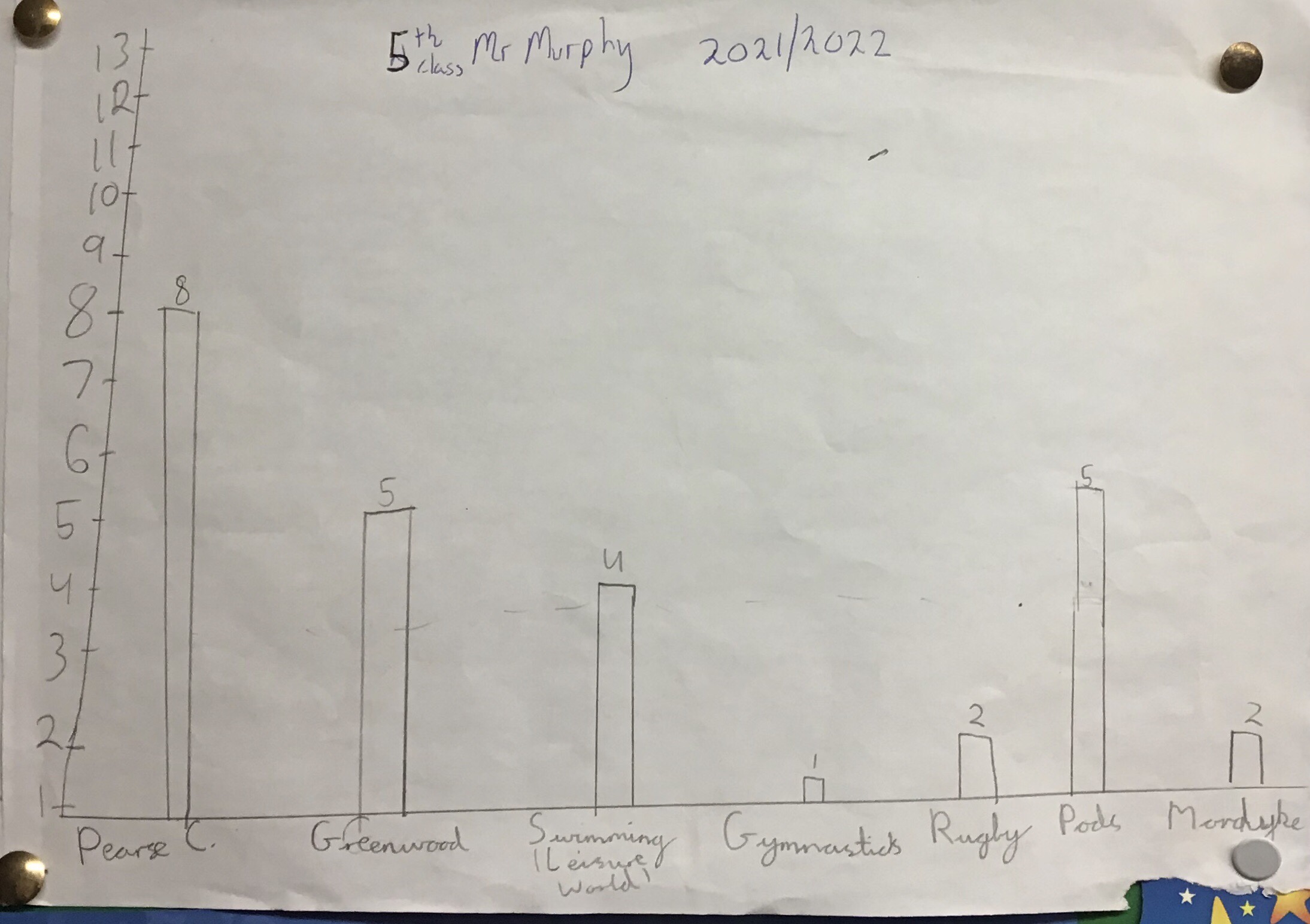 The Active School Committee recently conducted a survey amongst the senior classes. The boys wanted to find out what students were part of what sports clubs. They tallied the results and made out great graphs which are now on display on the noticeboard. we would encourage everyone to investigate all the local clubs and teams in the area. There is a full list of the local clubs available to look at on the active schools section of our website