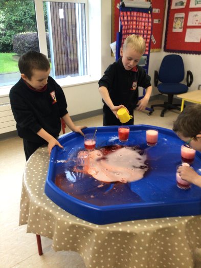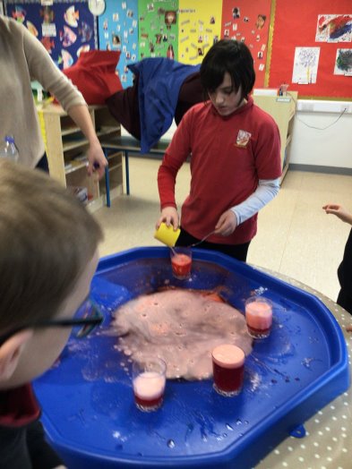 This Science Week the boys in Suaimhneas learned all about volcanoes. We looked at various types of volcanoes and where volcanoes erupted around the world. We learned that the Ring of Fire is where most volcanoes occur. We then created our own volcanic eruptions by mixing an acid (vinegar) and alkali (bicarbonate of soda) which releases Co2 (bubbles!). If you would like to try this at home, check out the step-by-step instructions below.