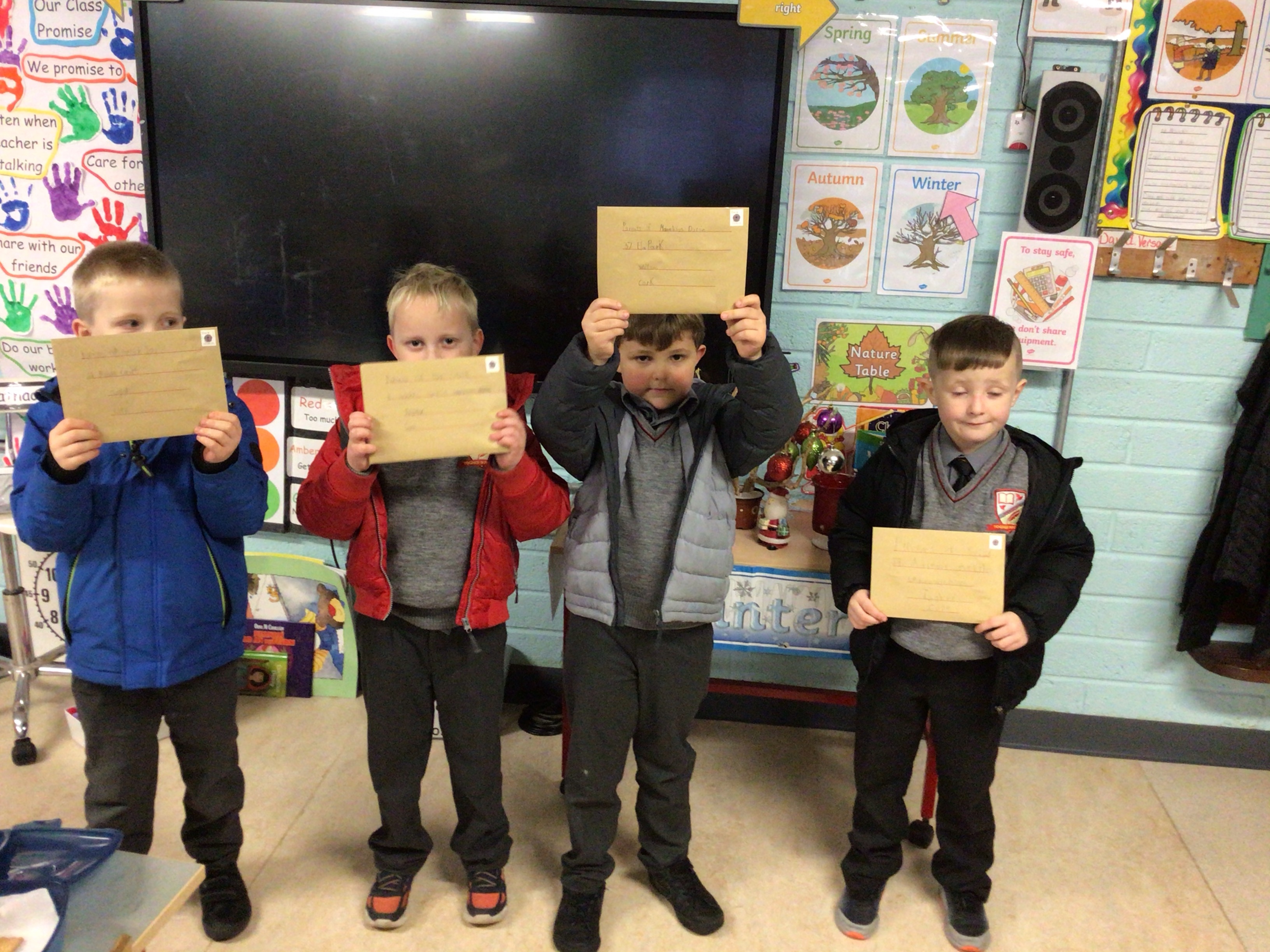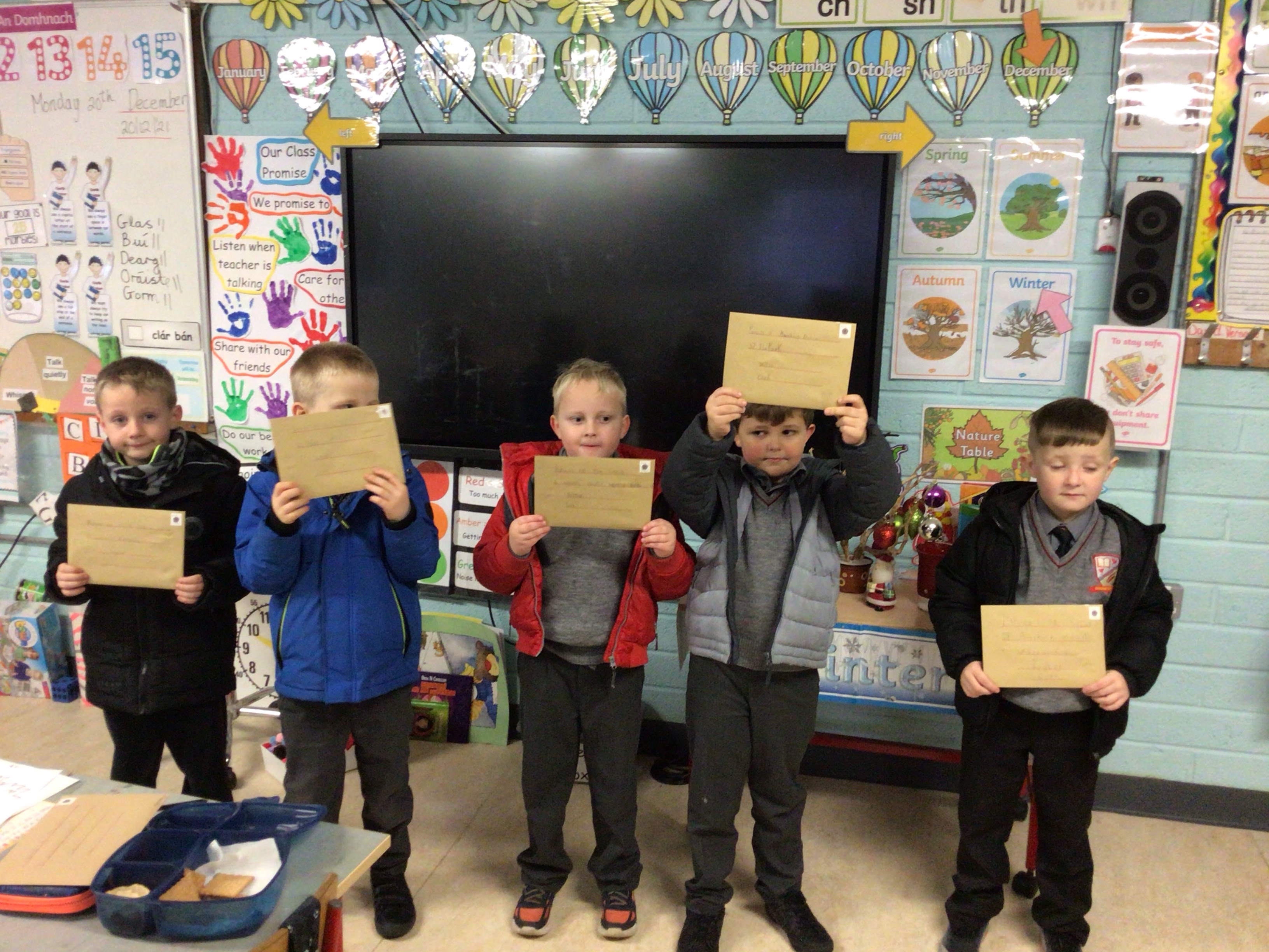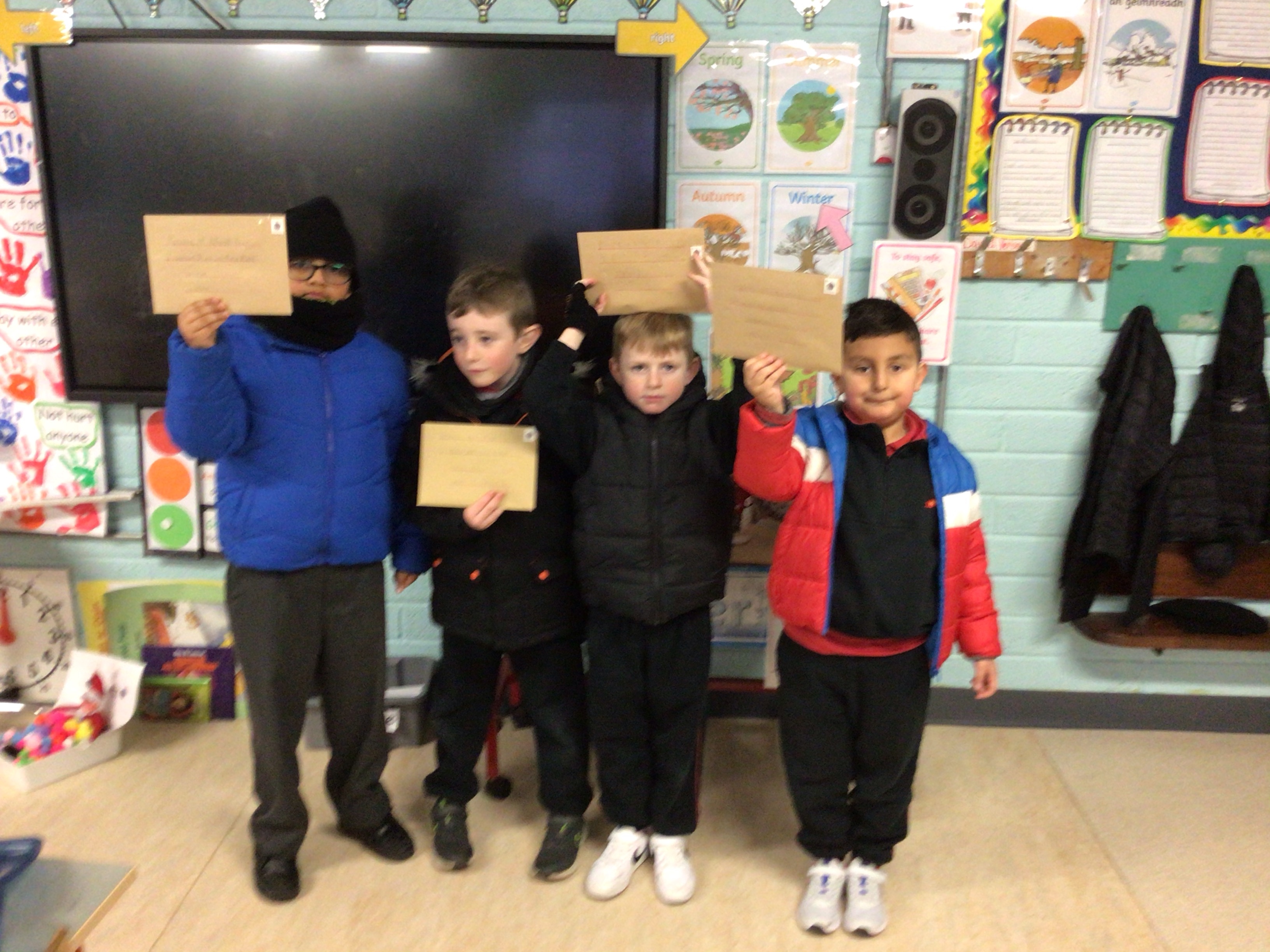 After we designed our very own Christmas cards, we wrote our addresses on envelopes and put stamps on them. We walked to the post box after.