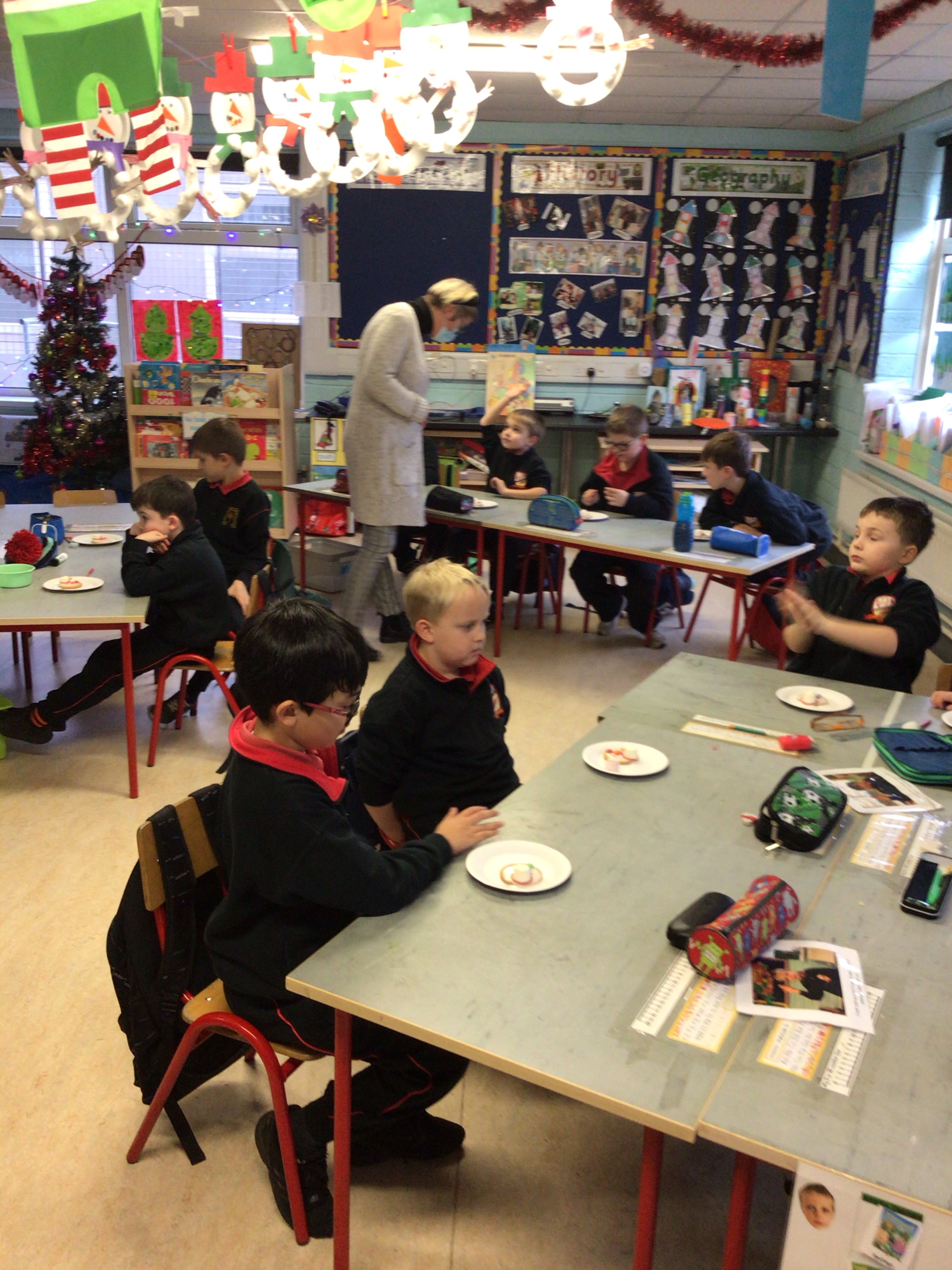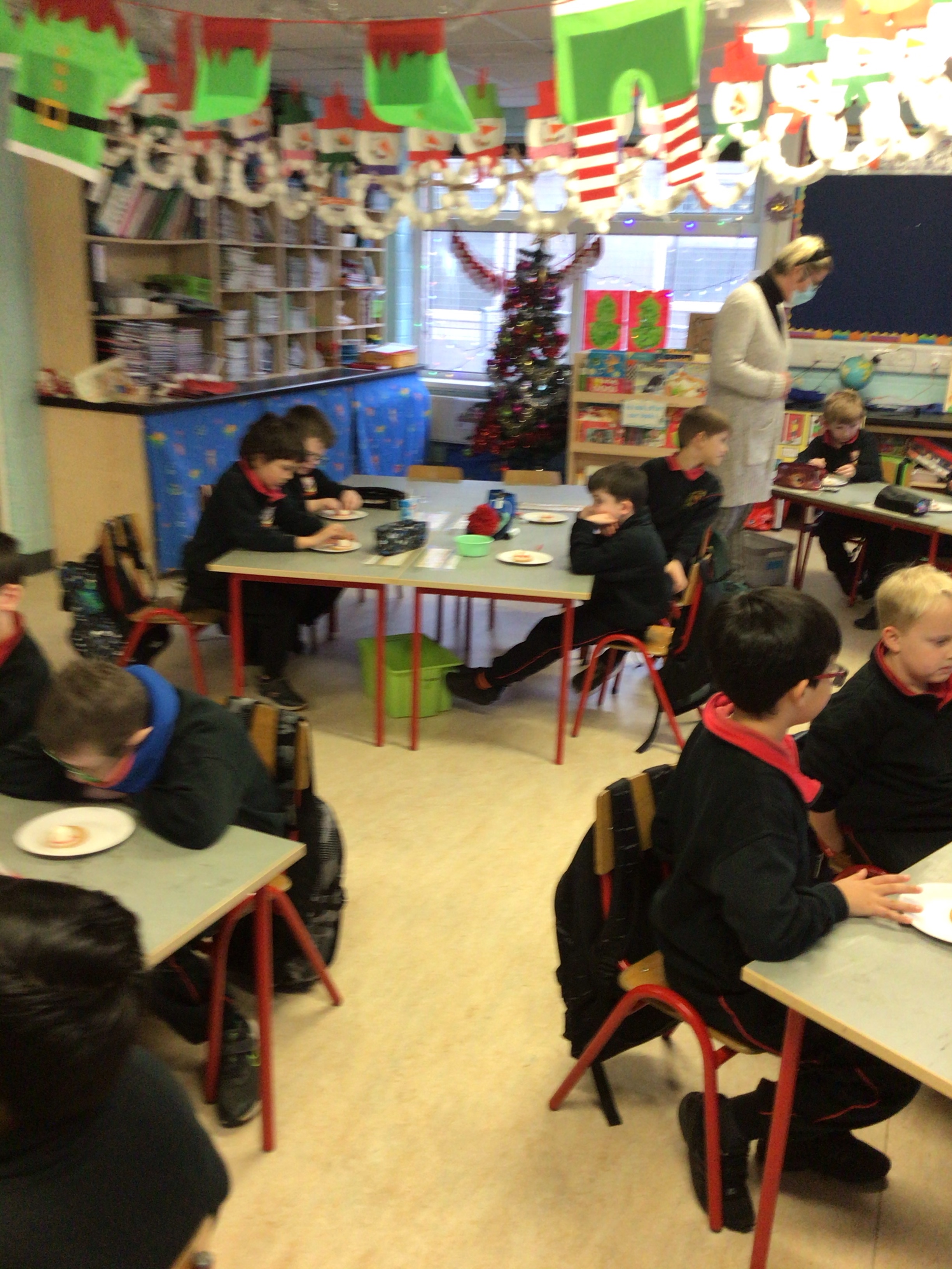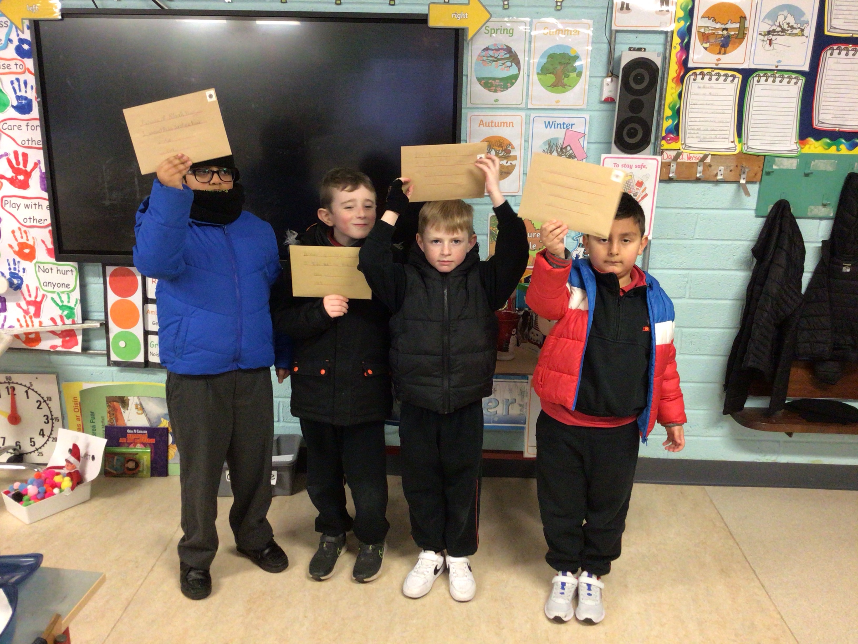 After we designed our very own Christmas cards, we wrote our addresses on envelopes and put stamps on them. We walked to the post box after.