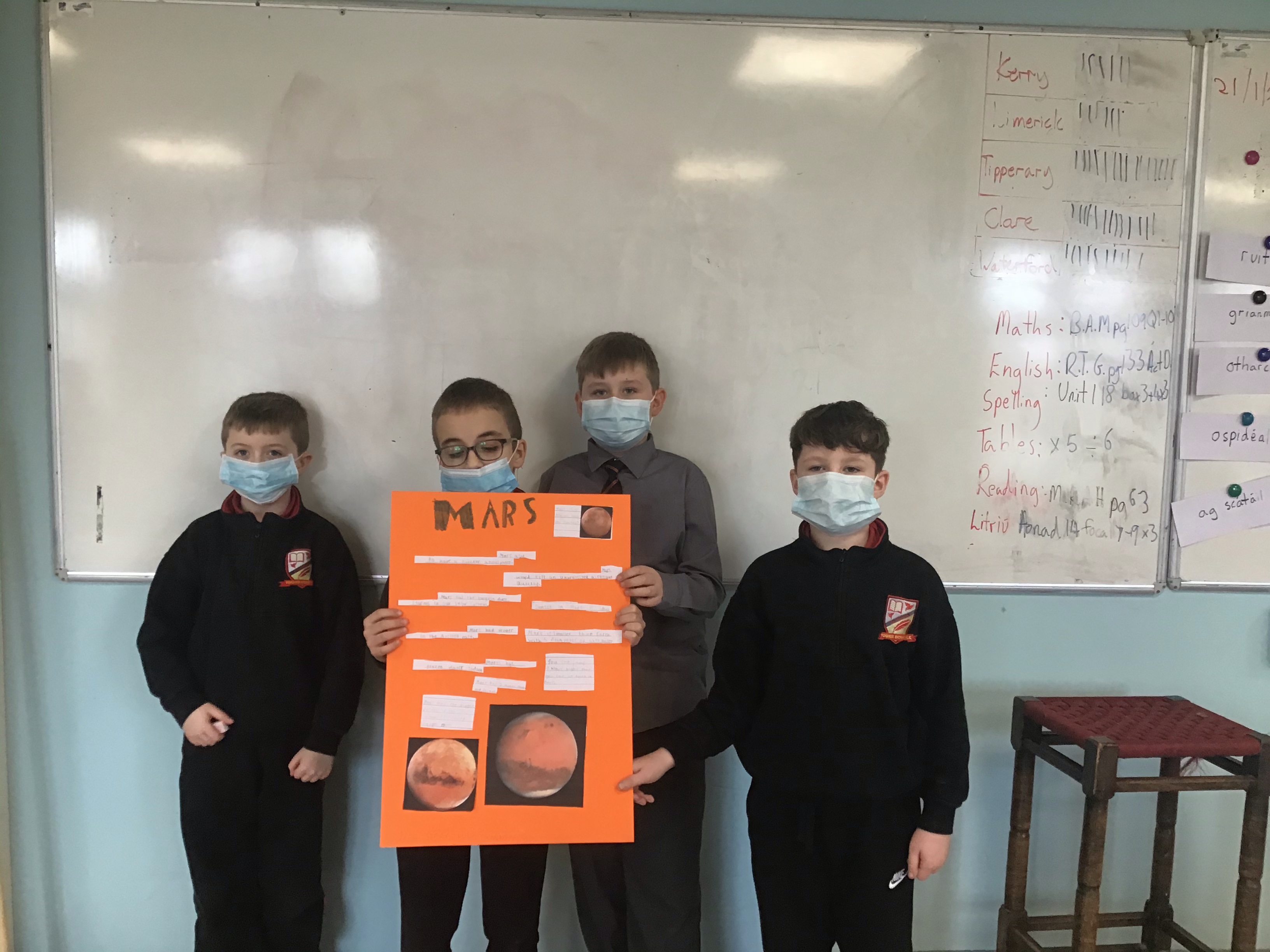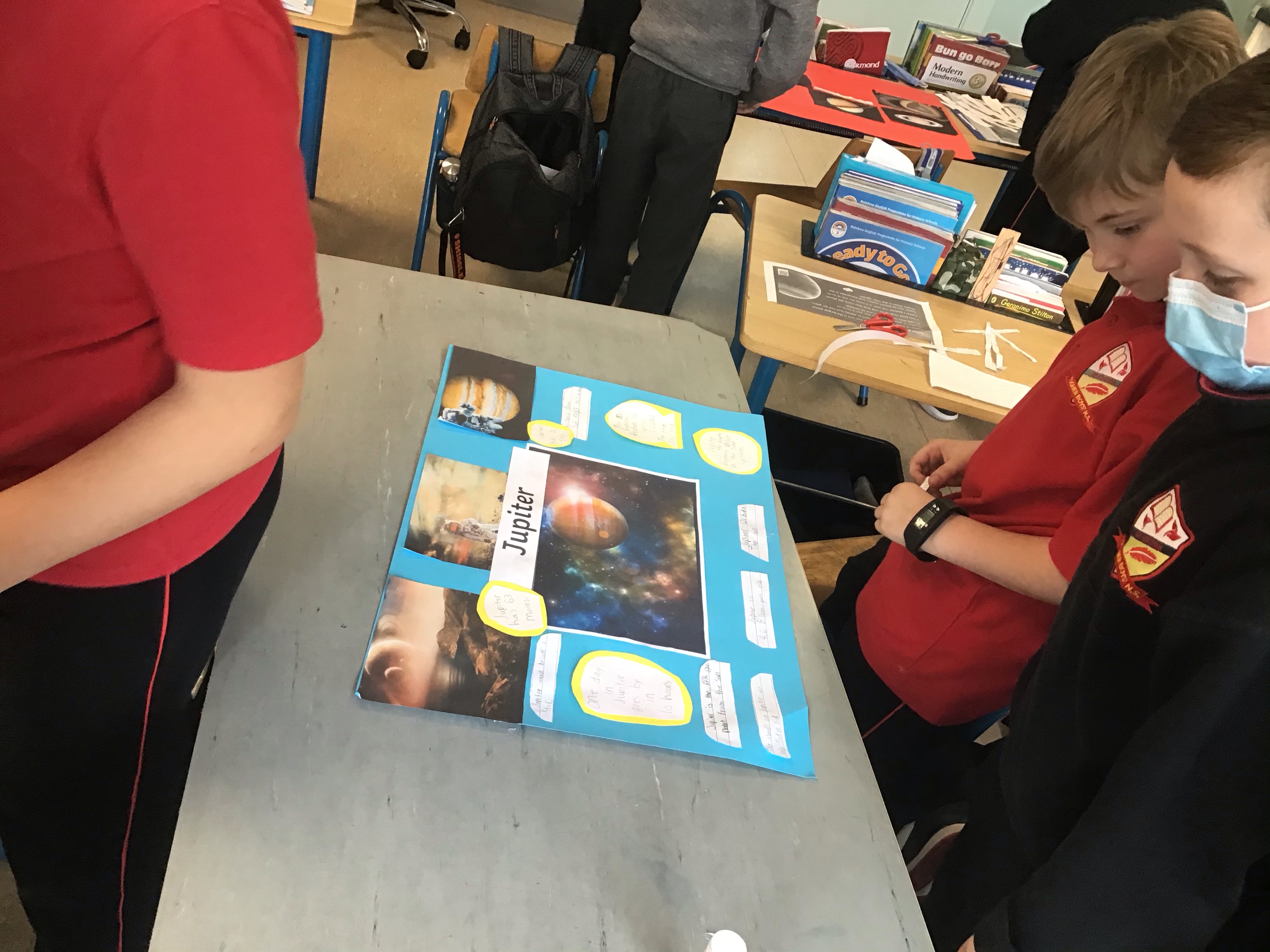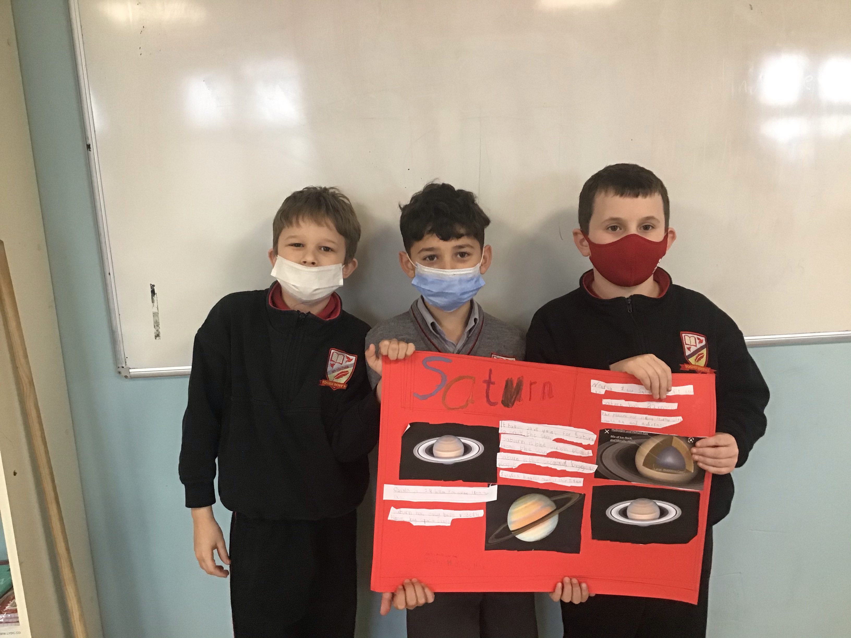 Mr Collins third class have been learning about outer space, the planets and space travel recently. After a lot of hard work in class, we decided to make group projects on the planets in our solar system. The boys worked in groups in school preparing their presentations and conducted great research at home.
