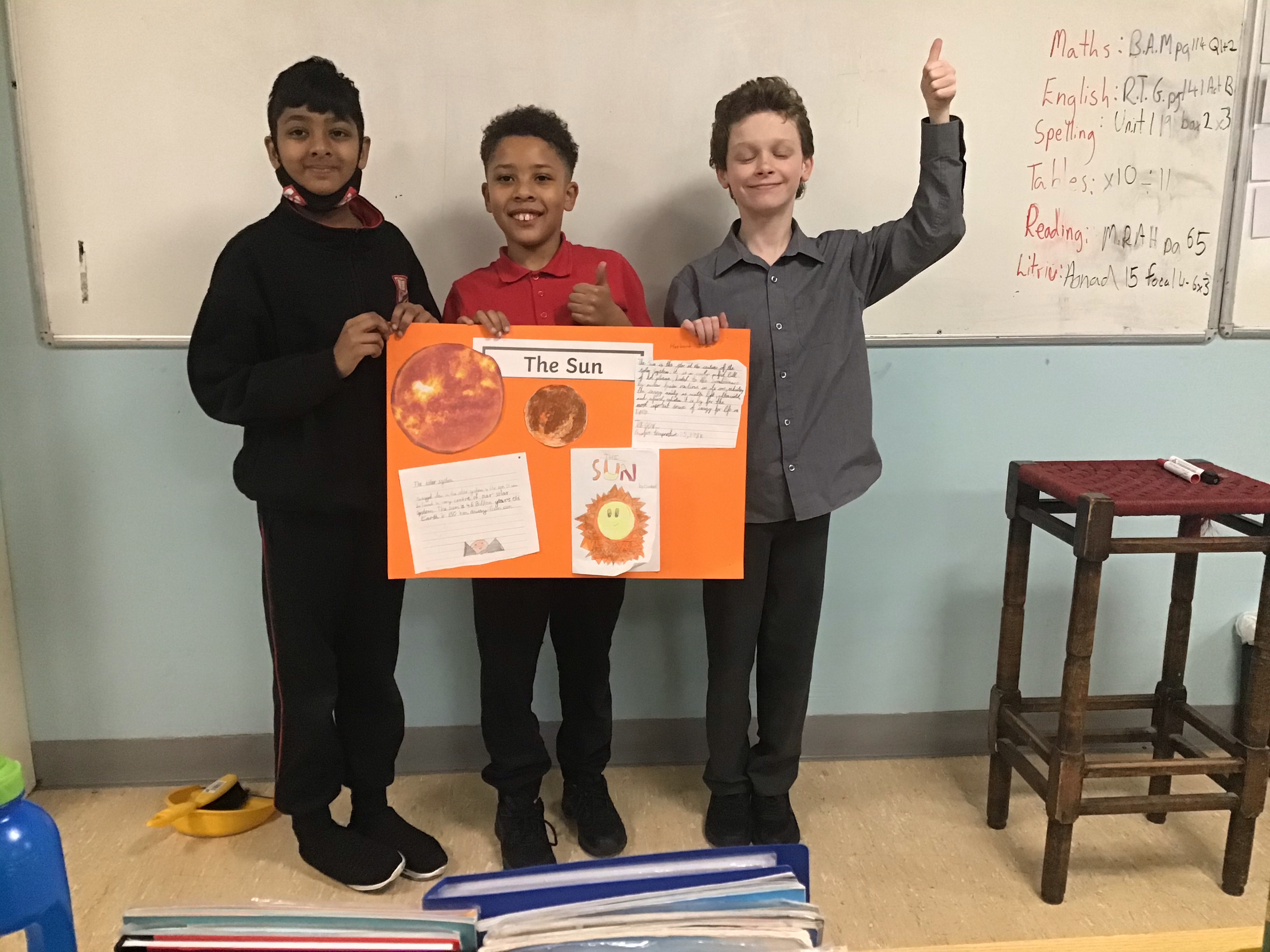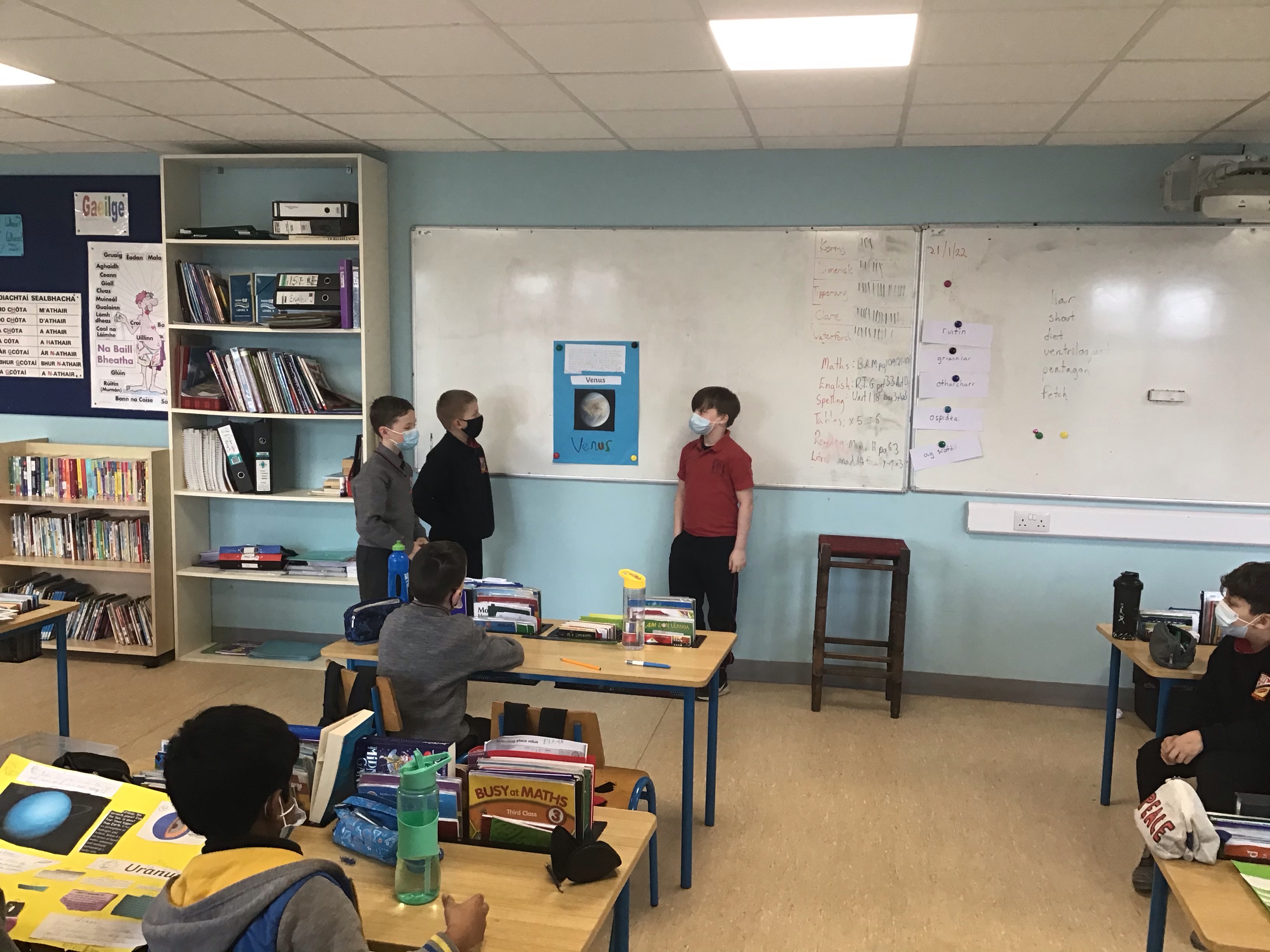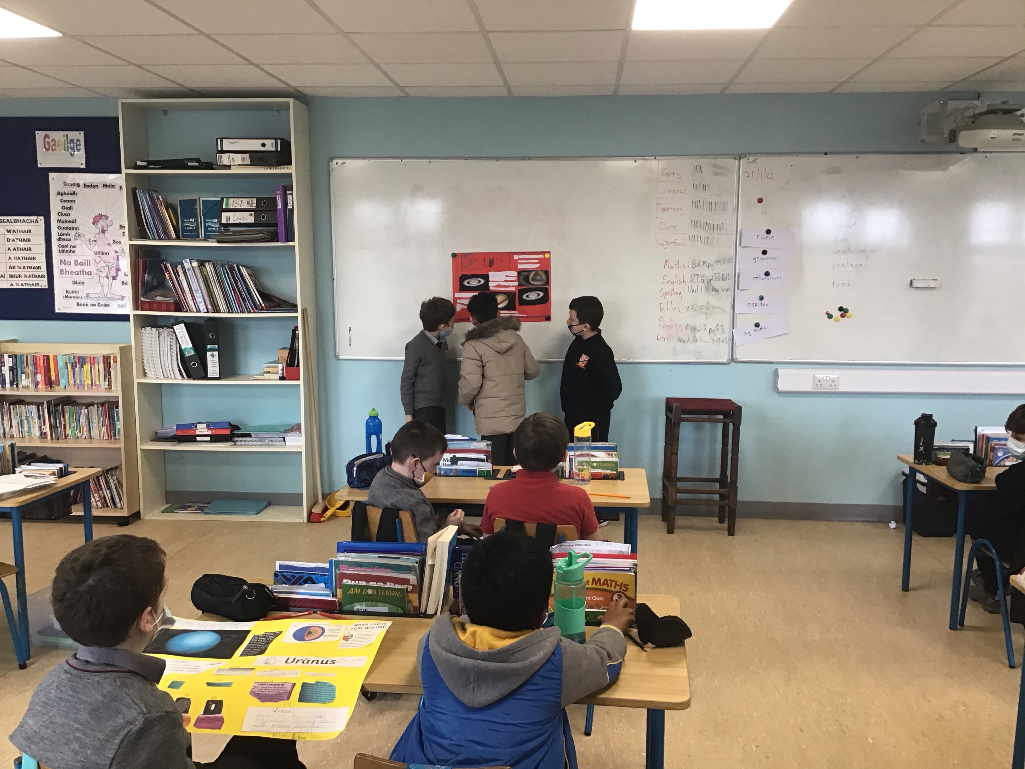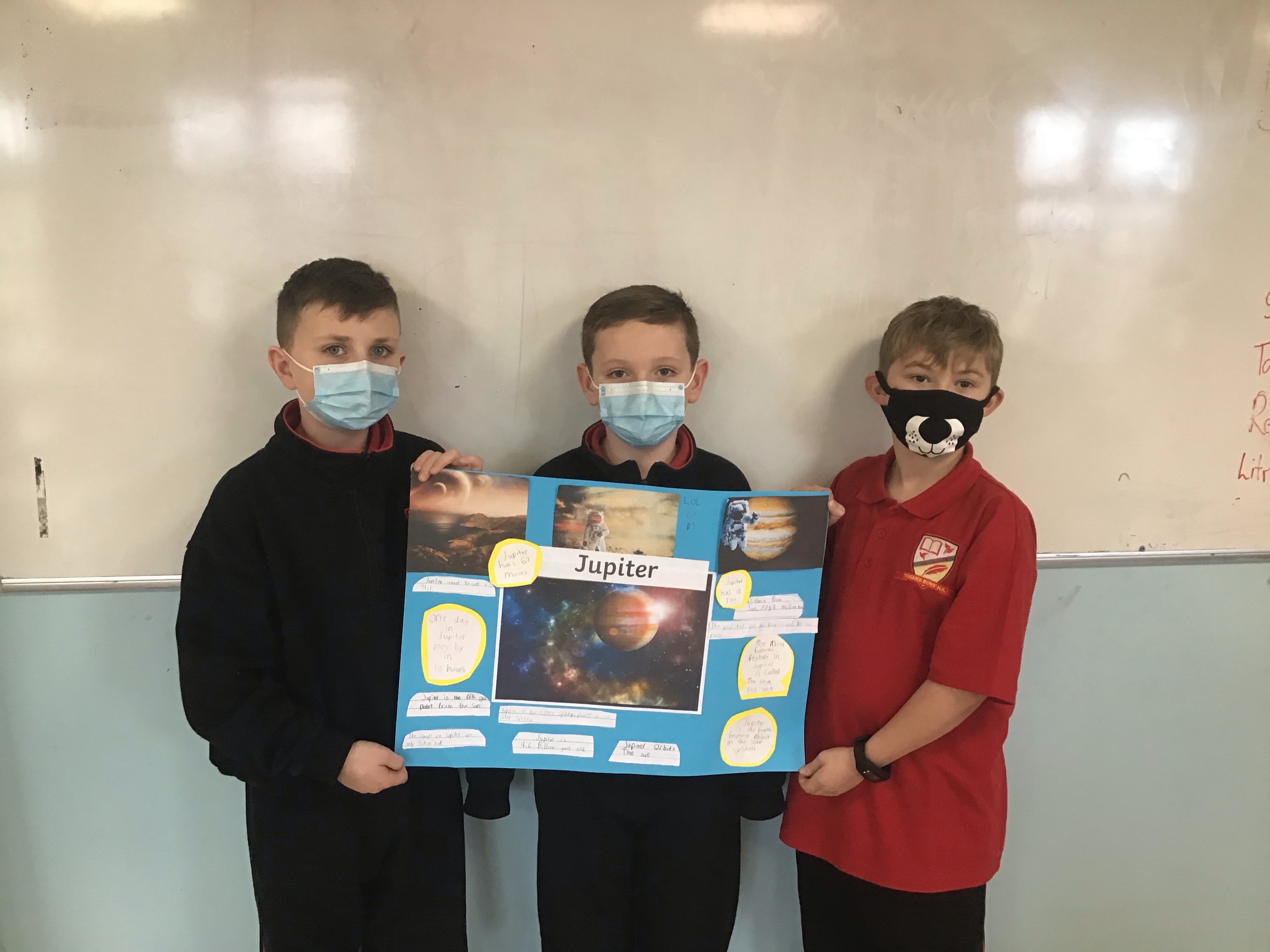Mr Collins third class have been learning about outer space, the planets and space travel recently. After a lot of hard work in class, we decided to make group projects on the planets in our solar system. The boys worked in groups in school preparing their presentations and conducted great research at home.