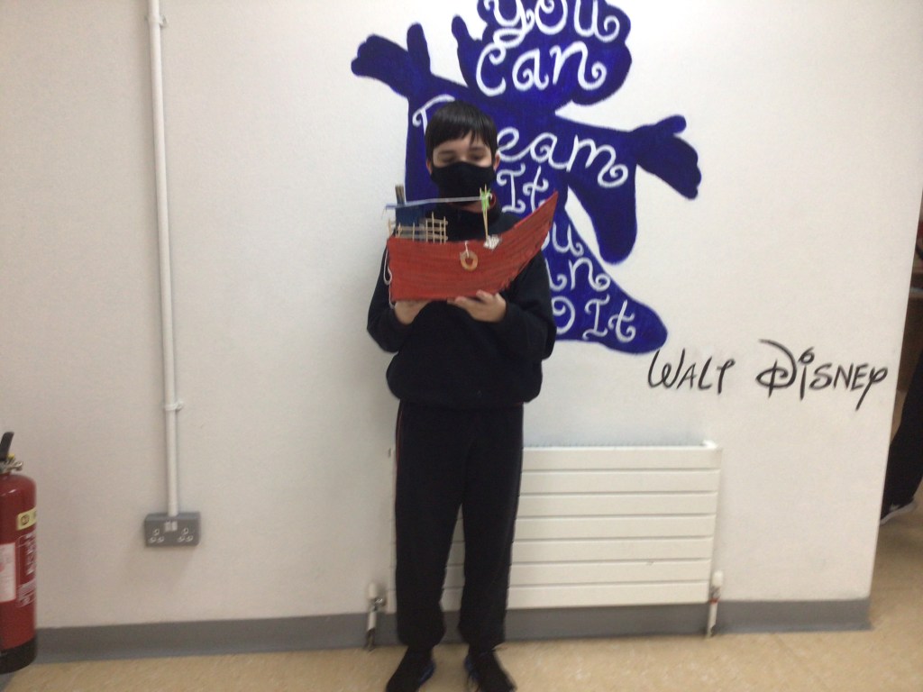 Noah made a model of the boat that housed Radio Caroline in the 1980s.This radio station broadcast all over Europe,it was a pirate radio station as it did not have a licence.There were no radio stations in the UK playing pop music all day and Noah’s dad worked for Radio Caroline.