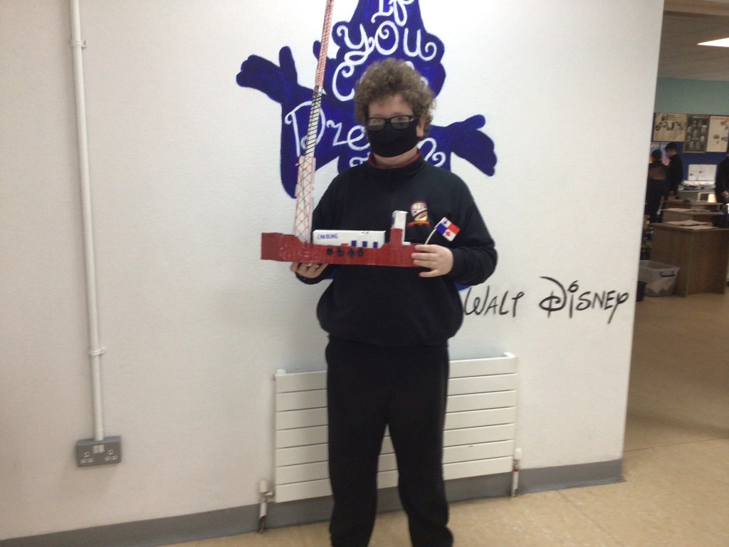 Kian designed a trawler,a fishing vessel. These boats are seen in all our fishing ports around the country. Kian’s trawler is called ‘Togher Voyage’.