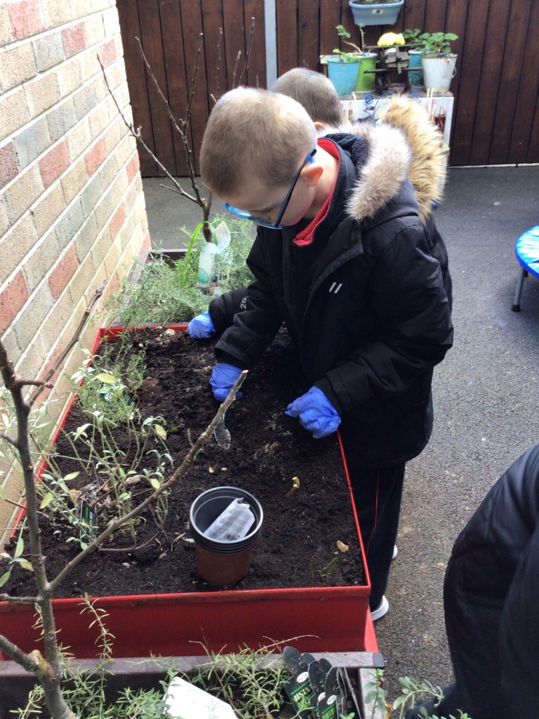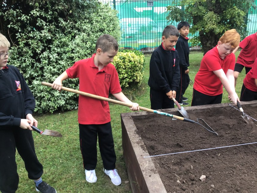 We have already made great progress with the new raised beds in the garden and by sowing wild flowers around the perimeter of the school.