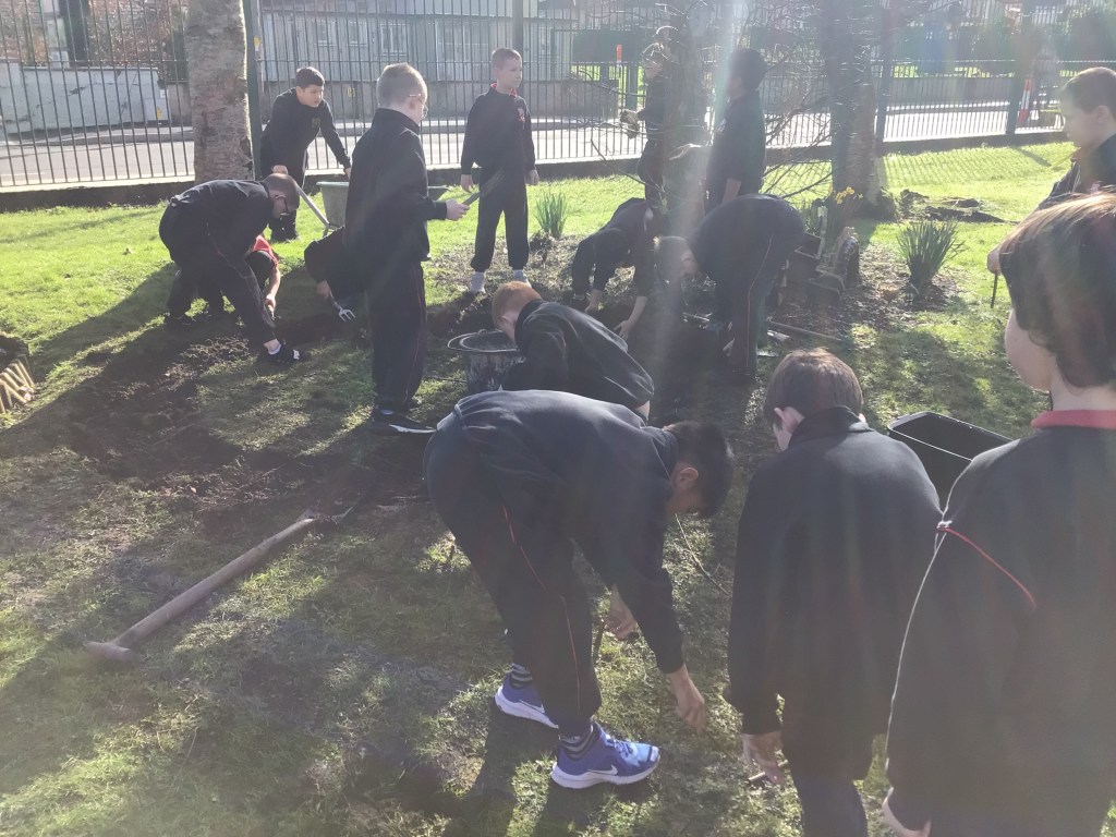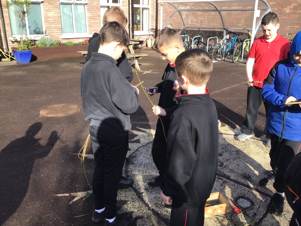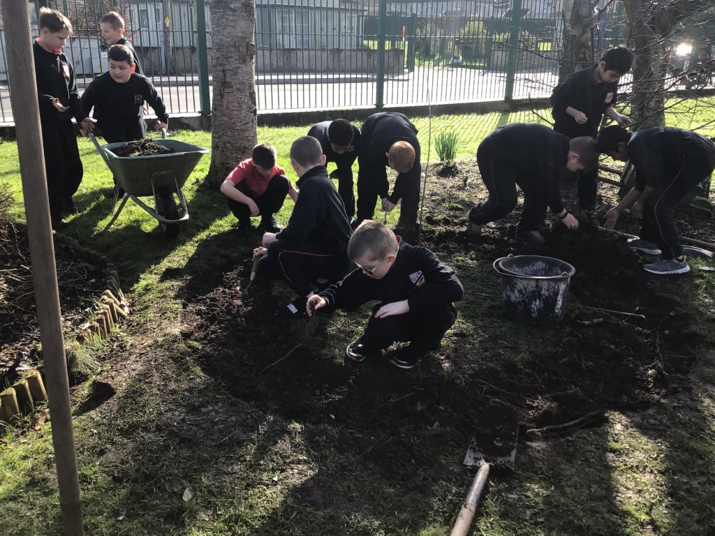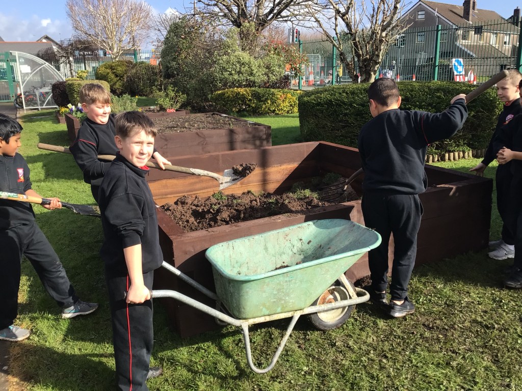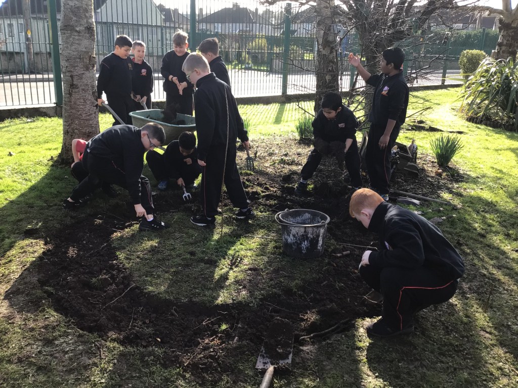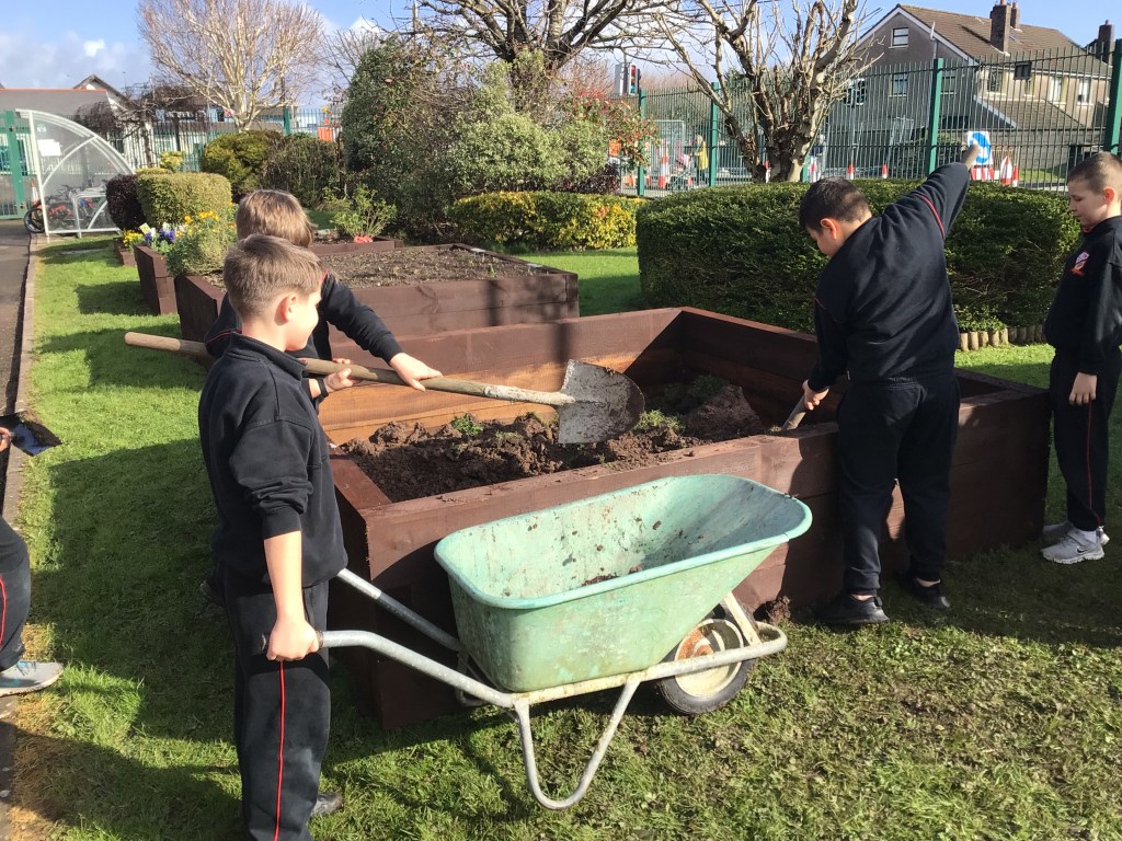 On Thursday 3rd March, both fourth classes got their gardening tools out and their hands dirty. The boys worked in groups to, sort, weave and plant the willow. Each group got an opportunity to perform different tasks, working hard to dig out a suitable plot in the garden and construct the willow dome and tunnel. Both 4th classes have contributed a lot to the school garden this year and were delighted to see the impressive dome and tunnel take shape after all their hard work.