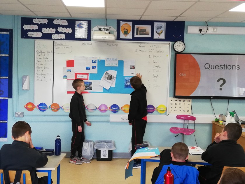 Following on from our class trip to Lifetime Lab to learn about Marine Biodiversity, the boys created their own projects on Marine Life. Each boy worked individually and as part of a group. Last Tuesday, the boys showcased their work in front of their classmates and a marine biologist. It was great to see the knowledge and effort on display. Each project also highlighted how much the boys have learned from their recent programme on Climate Action and Pollution. Here are a couple of pictures of their work.
