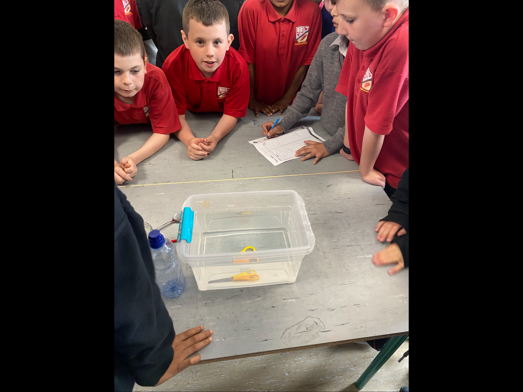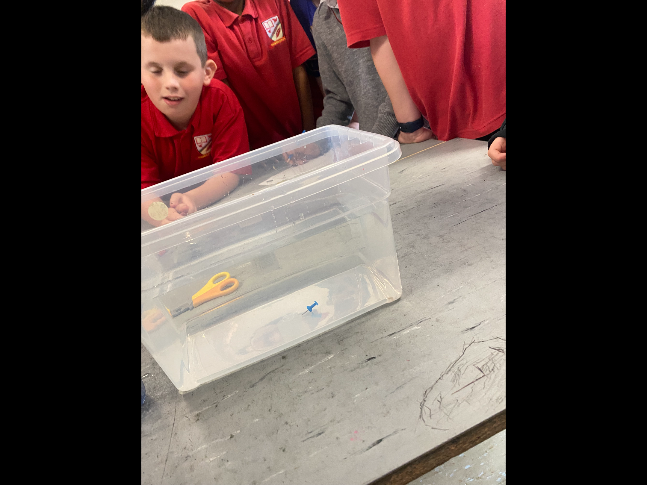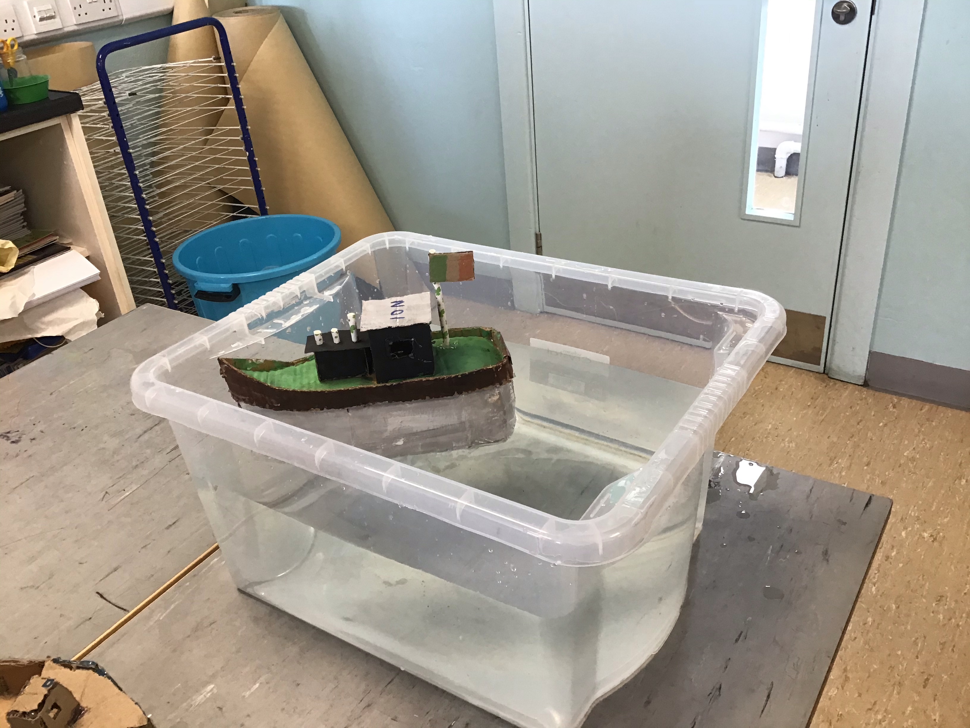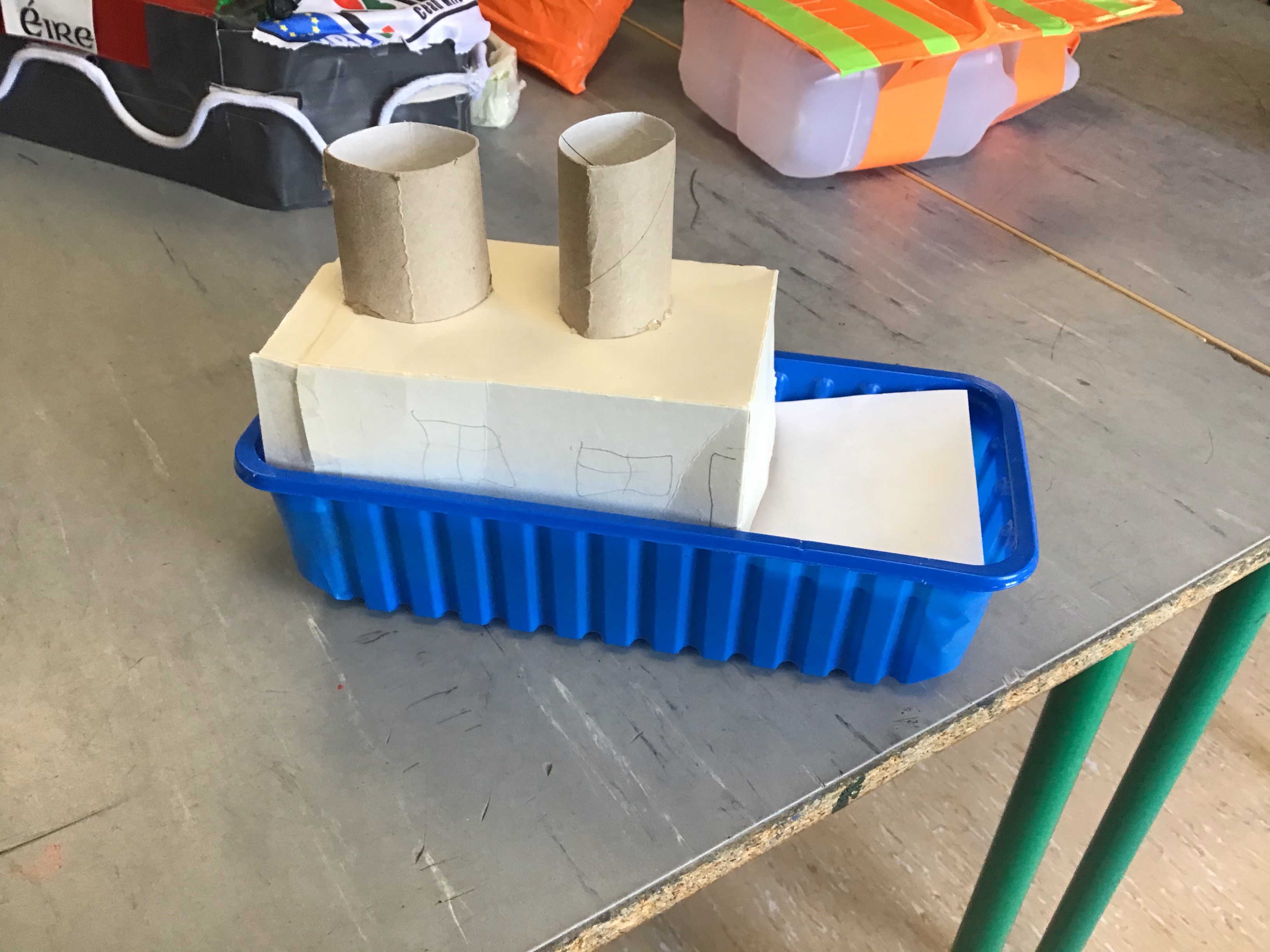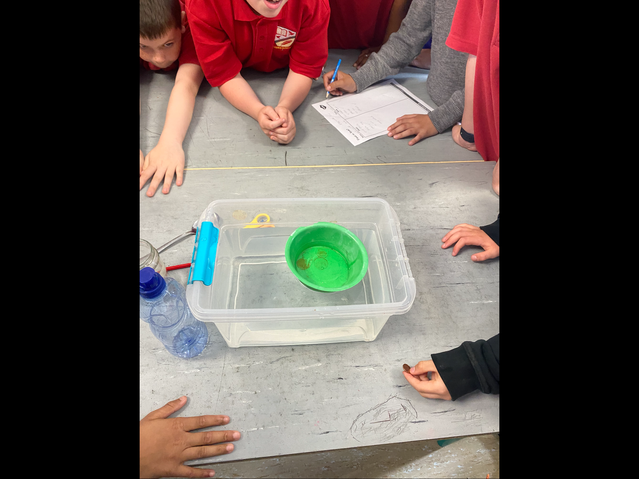 3rd class have been studying buoyancy recently and have been busy investigating why things float or sink. We discovered that for a boat to float it must have a lower density than the water. Density depends on two things; mass and volume. Mass is the amount of stuff that is in an object while volume is the amount of space it takes up. We also agreed that for something to float successfully in water it would need to be waterproof. We conducted two experiments; one to investigate what objects float and sink in water and the other to test what materials were waterproof.