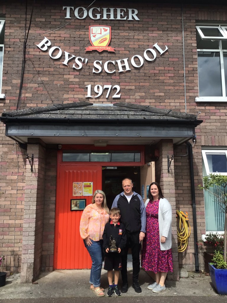 This year the award for Rita Lenihan’s Kindness Award was given to Ruairí Crowe in Mr Collins’ third class. Ruairí Crowe has displayed the type of kindness this year that has visibly enhanced the lives of boys in his class. It is a pleasure to give this award to a boy who, through his encouragement and support has effortlessly given confidence and contentment to those around him. He is a credit to this school and his family. He is a great example to everybody in our school. Well done Ruairí!
