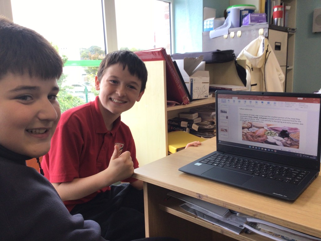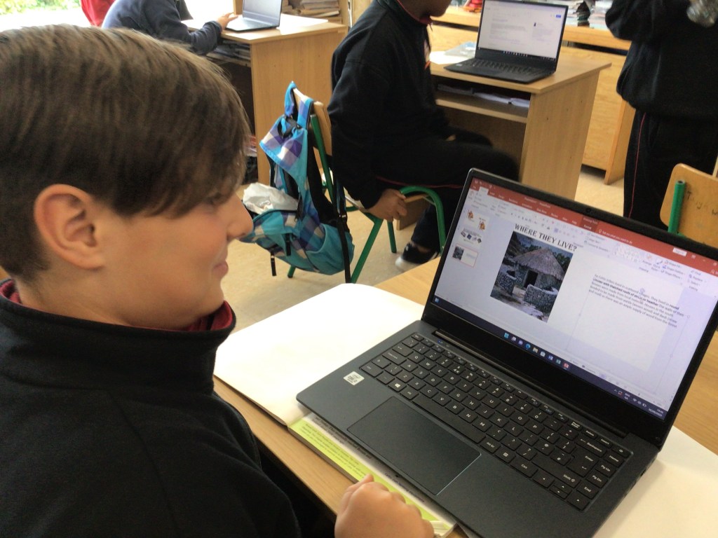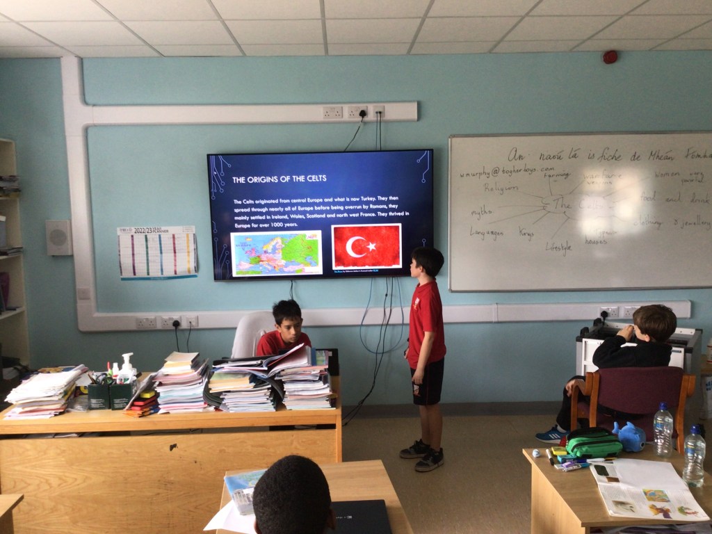 The boys in Ms Moynihan and Mr Murphy’s classes have been busy using the school’s new laptop trolley to develop their ICT skills. Using PowerPoint, they have been honing their presentation skills. They have already shown lots of impressive research and presenting skills and are really enjoying working on the laptops. Some tips from the boys are to, do your research, speak clearly when presenting to a group and always check your spelling and grammar!