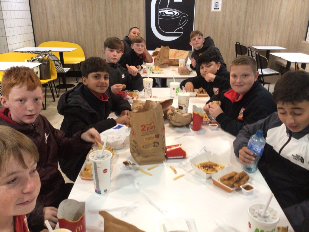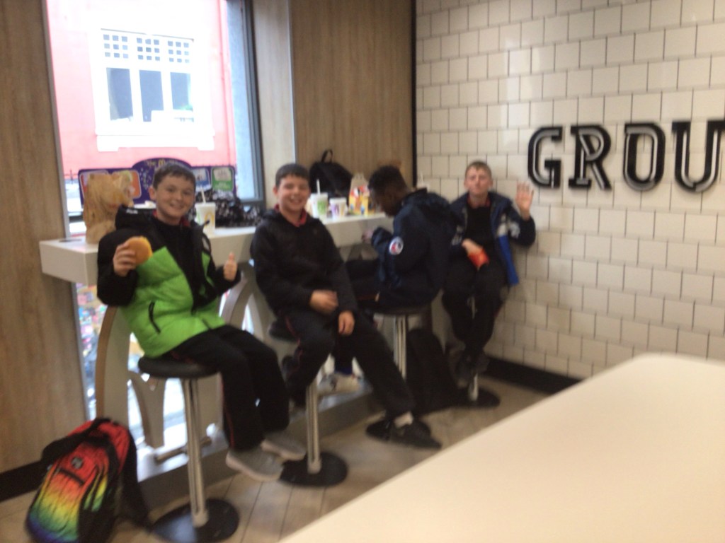 This morning the pupils of sixth class set off for a visit to Graffiti Theatre in Blackpool. We caught the 214 bus to the City Centre where we had a stop for some refreshments in Mc Donald’s.