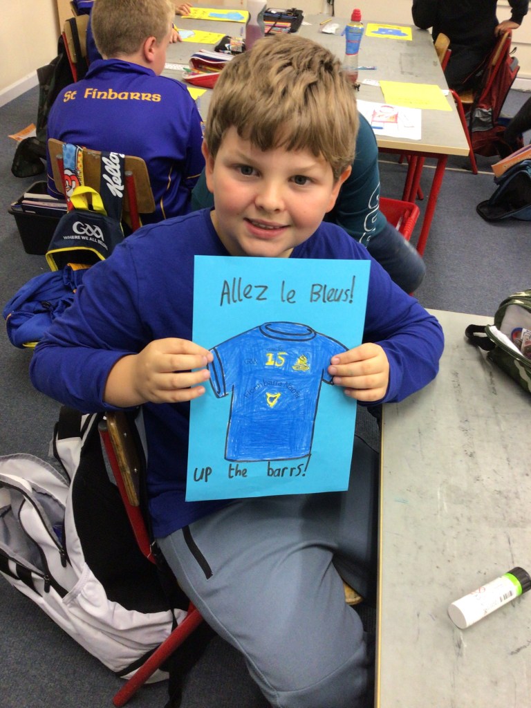 The boys in Mr O’Shea’s 2nd Class have been building up for the match all week by designing their own Barrs jersey for Art, singing and discussing a famous St. Finbarr’s song for Music and learning about the past and the locality for History.