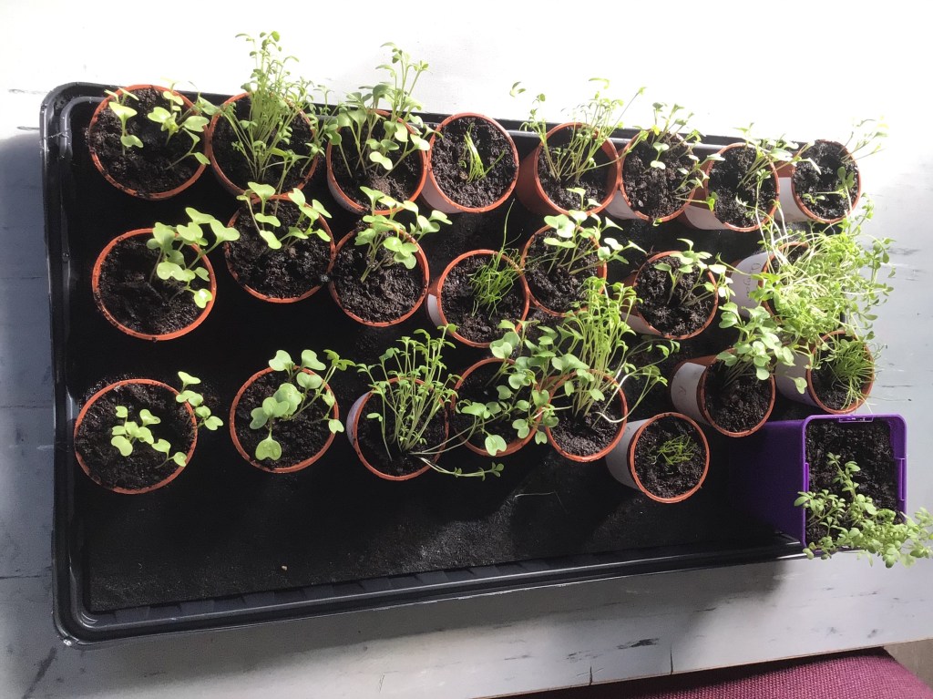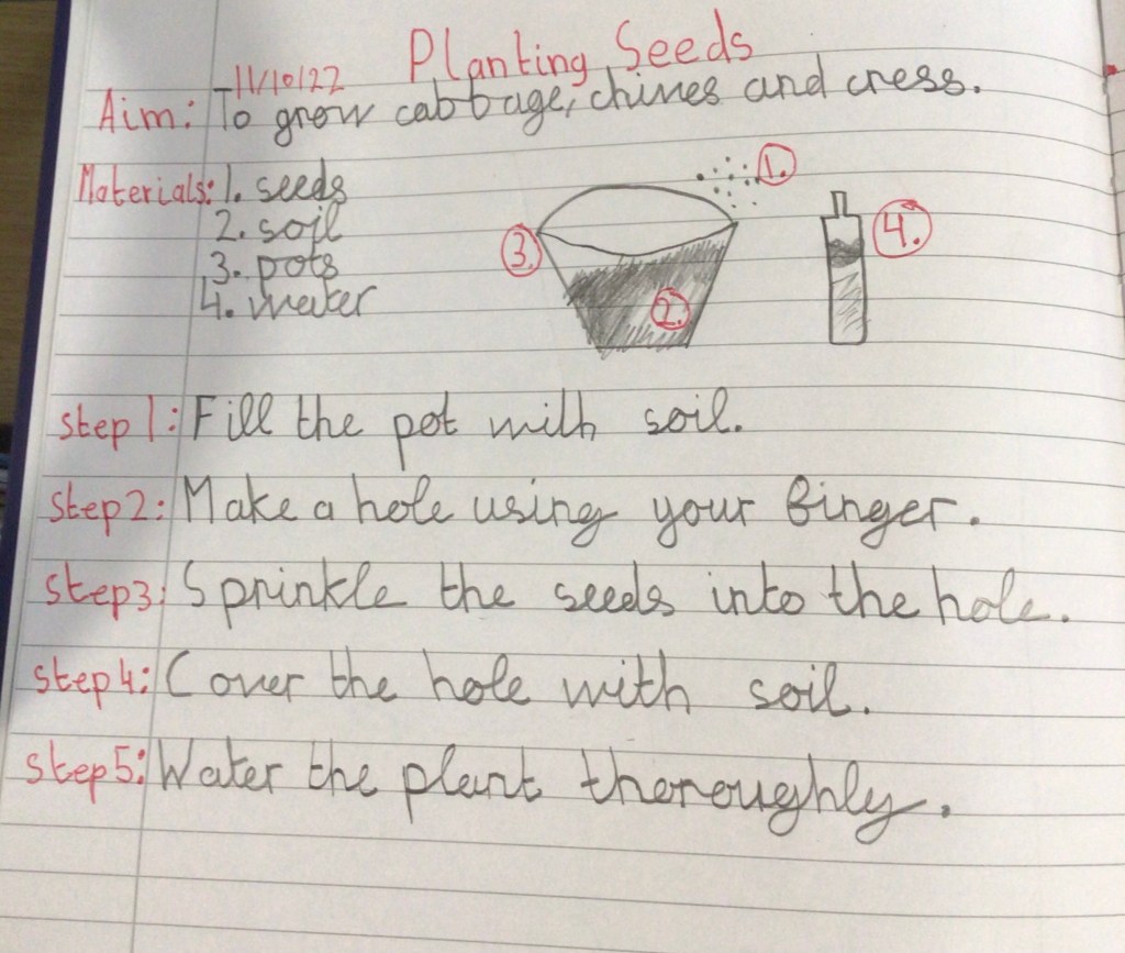 Next, we turned our attention to another aspect of the SESE curriculum; planting. Firstly, we planted spring bulbs; which we’ll expect to see bloom after Christmas. The daffodils, narcissus’ and snowdrops can be added to the school garden in time for spring. We also discussed the importance of growing our own food. The boys planted cress seeds, cabbage seeds and chive seeds. We were amazed by how quickly they began to grow for us. The class is doing a terrific job watering and taking responsibility for the nurturing of the seedlings.