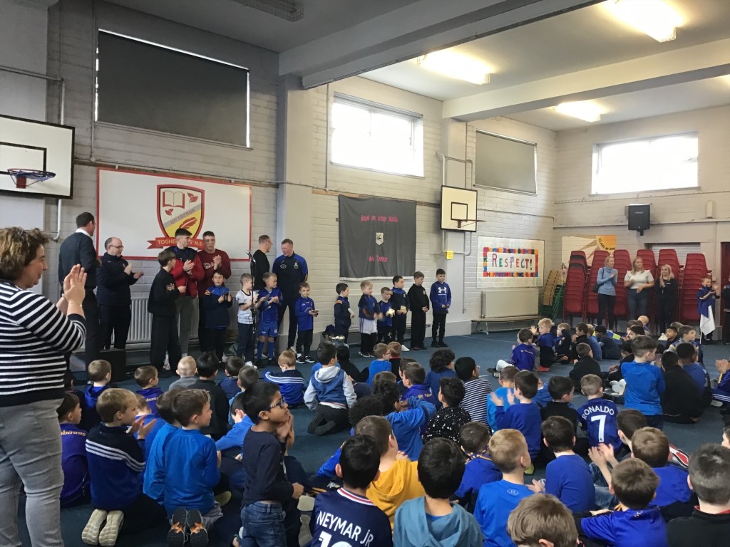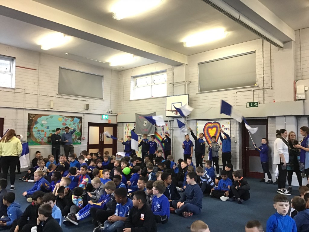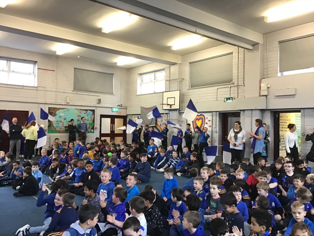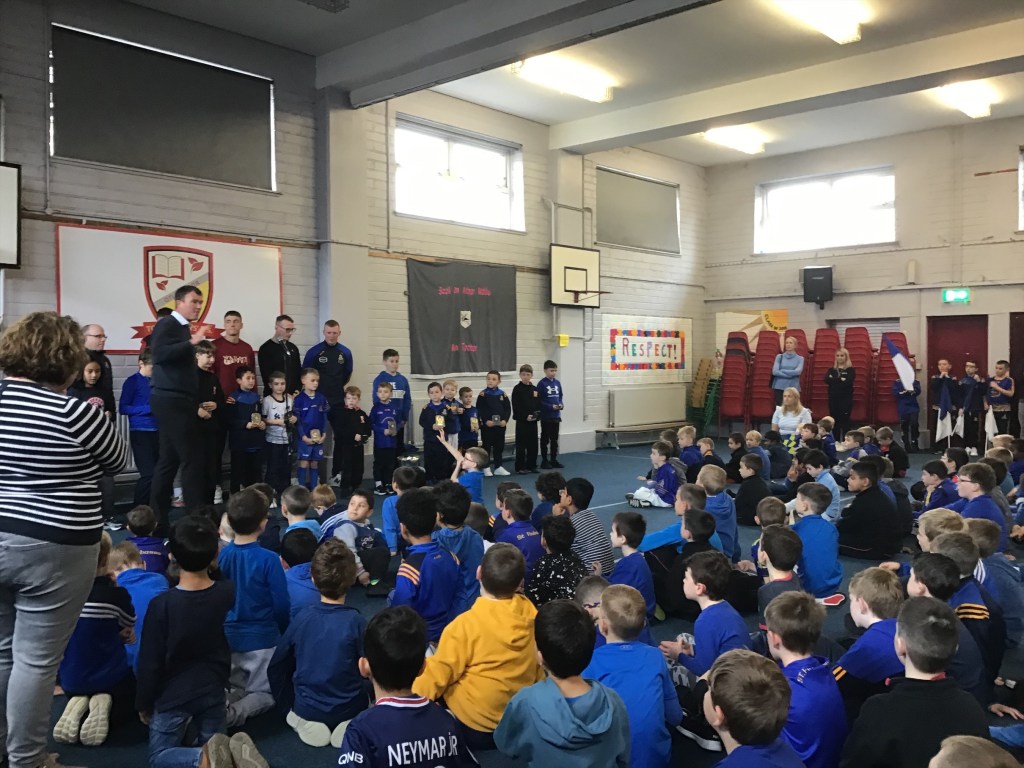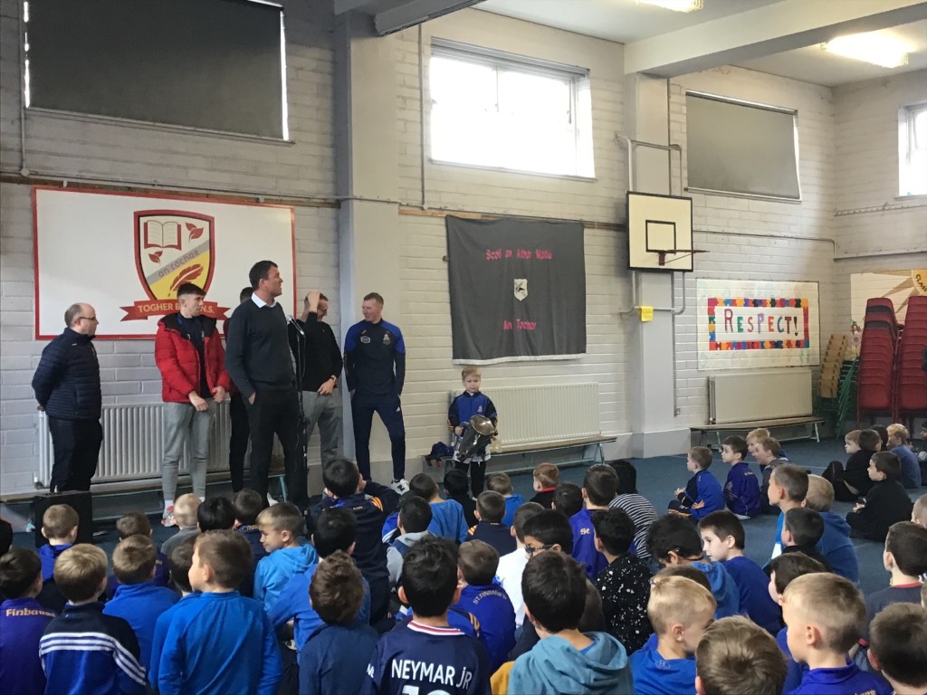 We were so lucky to have the St Finbarr’s hurlers in school this Friday, fresh from winning the Cork county championship last Sunday. The boys were decked out in blue and gold and the Togher flags were waving high in anticipation of Wednesdays Sciath na Scol final. Past pupils Conor and Damien Cahalane were joined by fellow stars Ben Cunningham and Ethan Twomey. All four played a starring role last Sunday. Congratulations to everyone on their great success and hopefully the footballers will complete an historic Double next week.