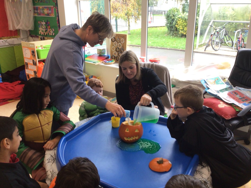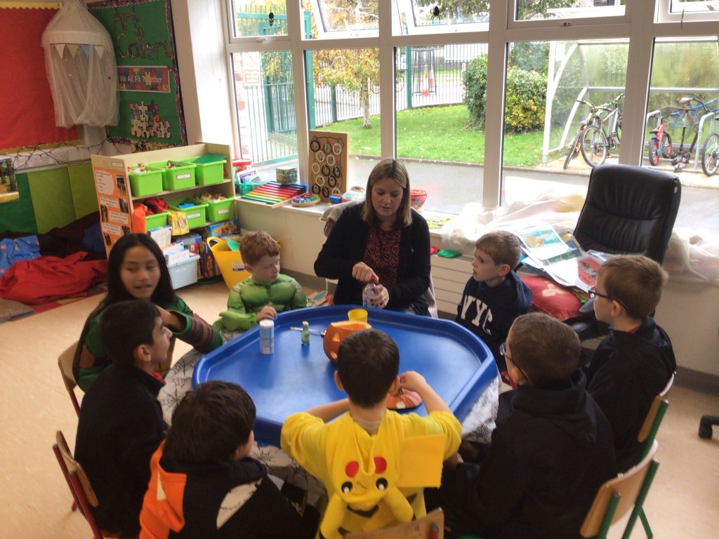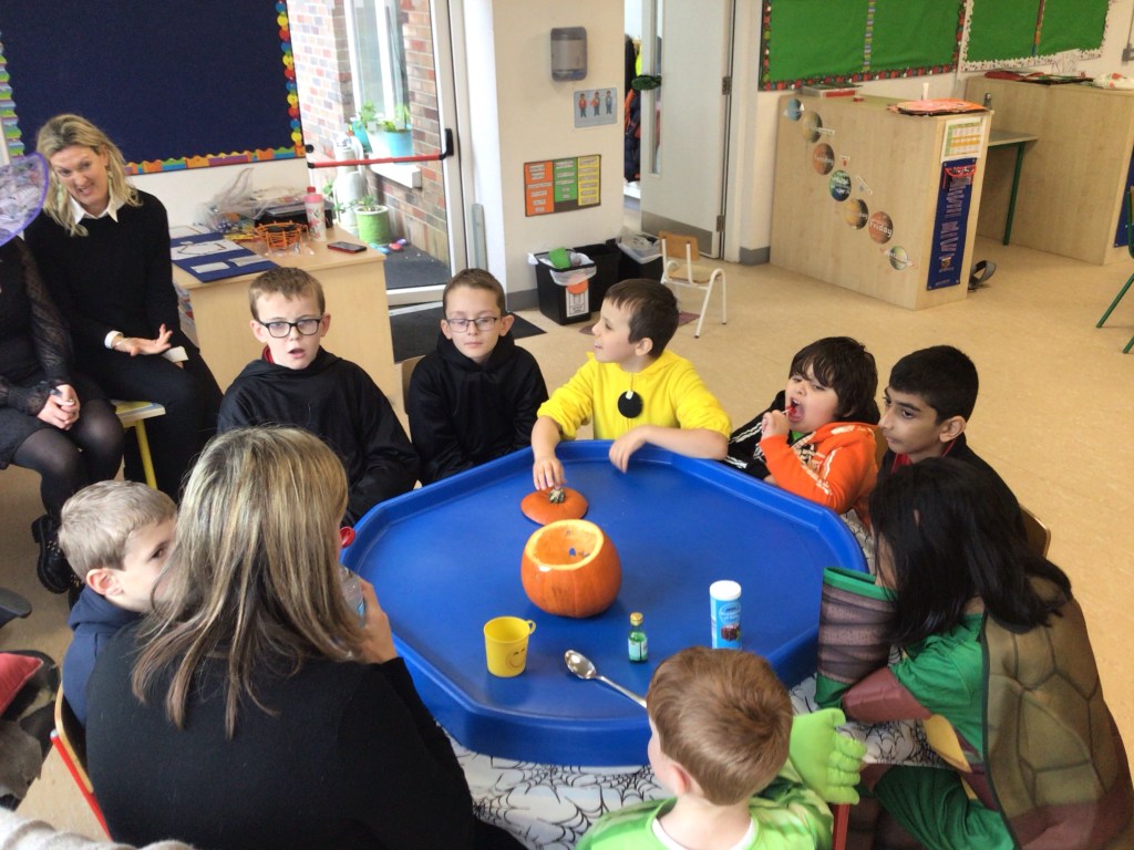 We had some very spooky visitors last Thursday. Well done to the boys for their fantastic Halloween outfits. We had some great fun doing our Exploding Pumpkin experiment and our spooky Skeleton Dance.