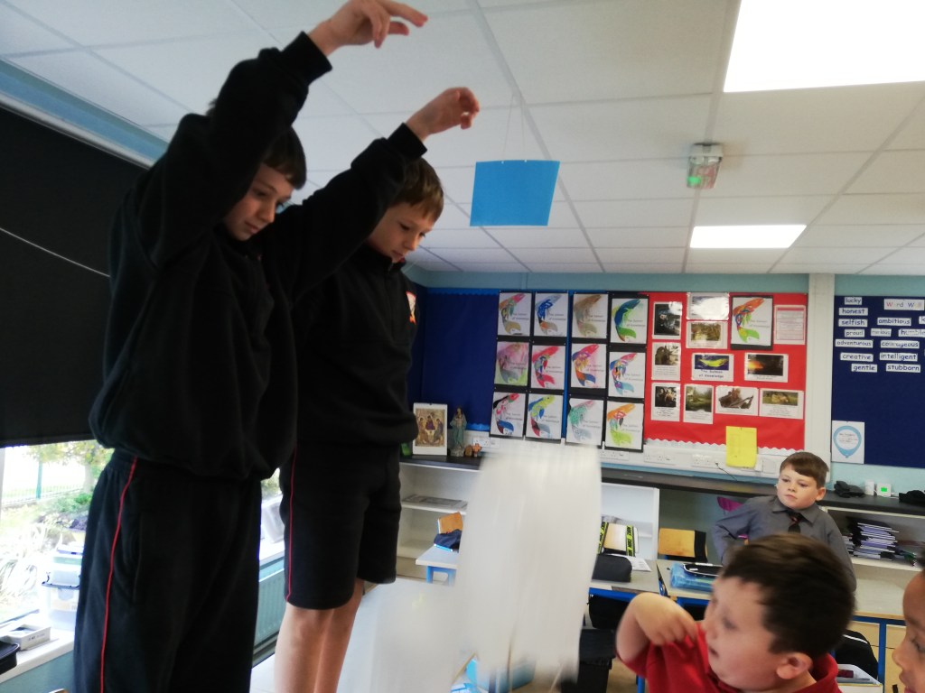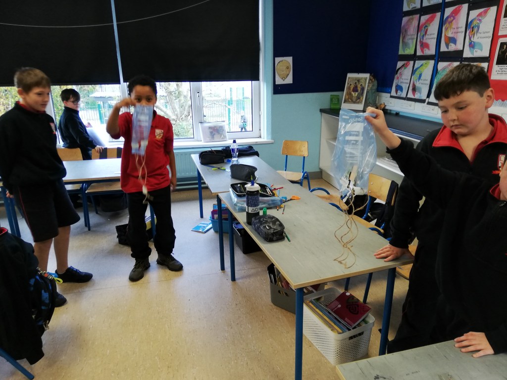 During Science week, the boys in Mr Ryan’s class learned about the force of gravity. They also experimented with wind resistance and created their own mini parachutes to see if they could slow an object falling from the sky. Below are some pictures of the work they did.