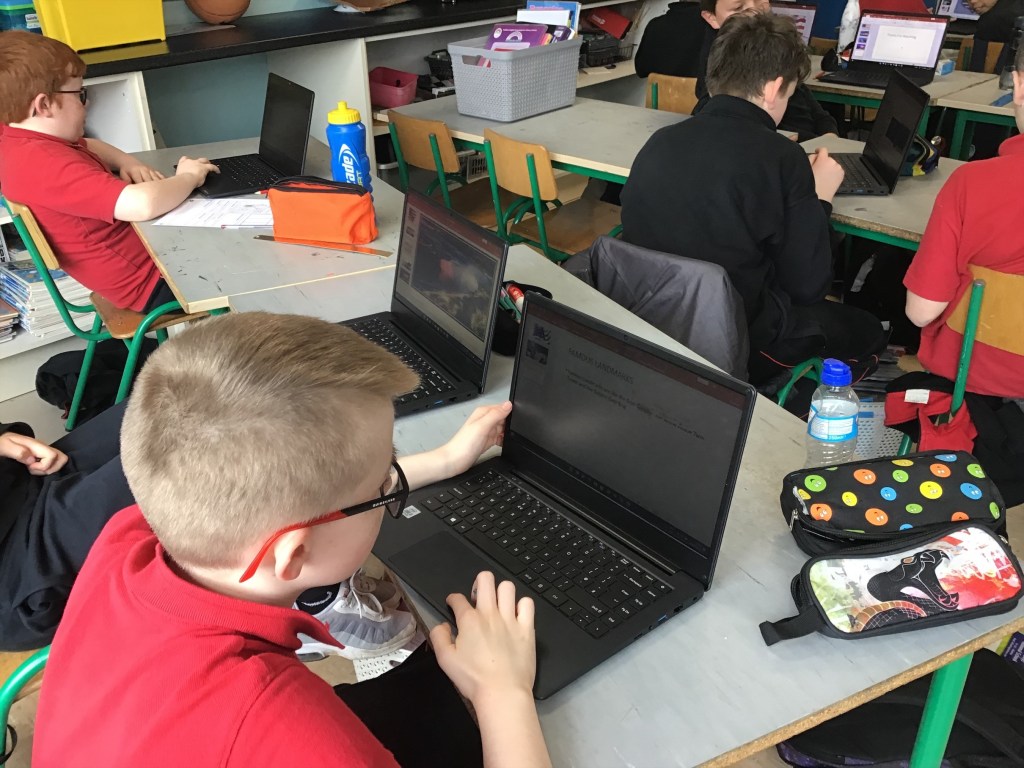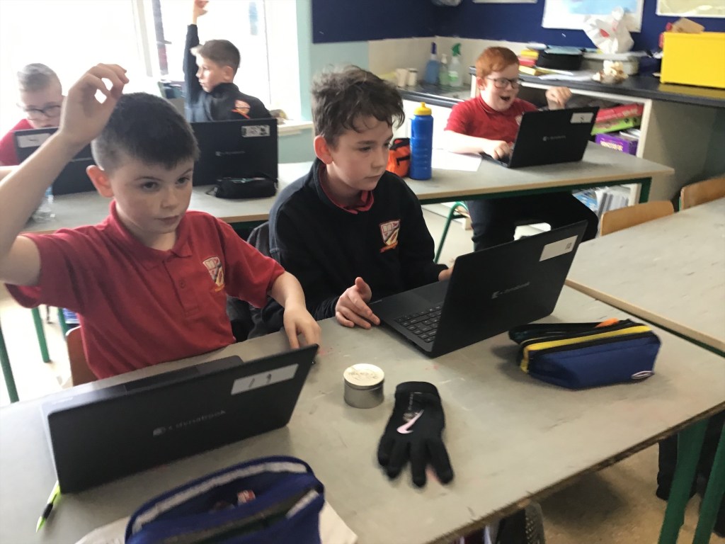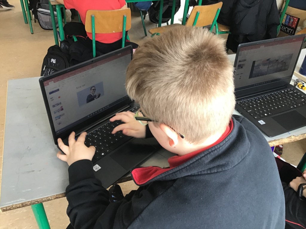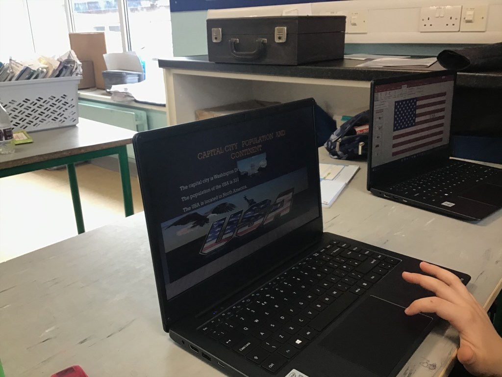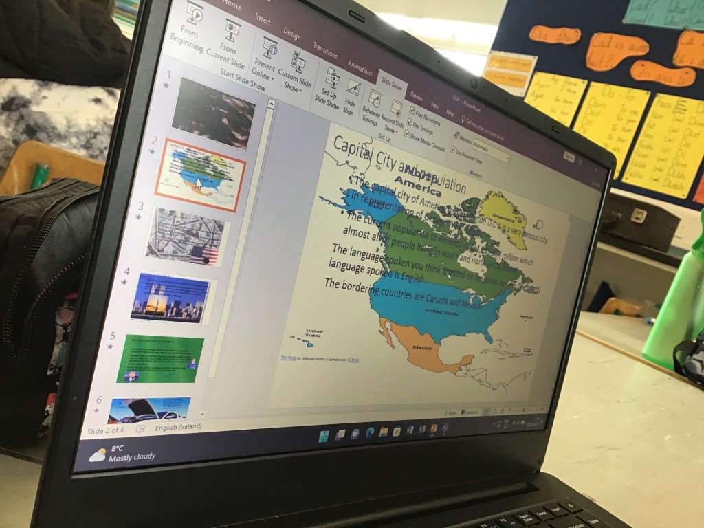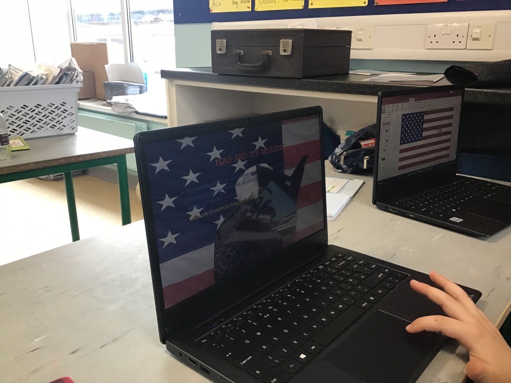 5th class have being making full use of the new laptop trolley in school recently. We merged our computer and geography skills to prepare projects on the USA. We wanted to study this country after learning about it’s fascinating revolution and war of independence in the 18th Century. We first used the internet to research our topic and then began to prepare our PowerPoints