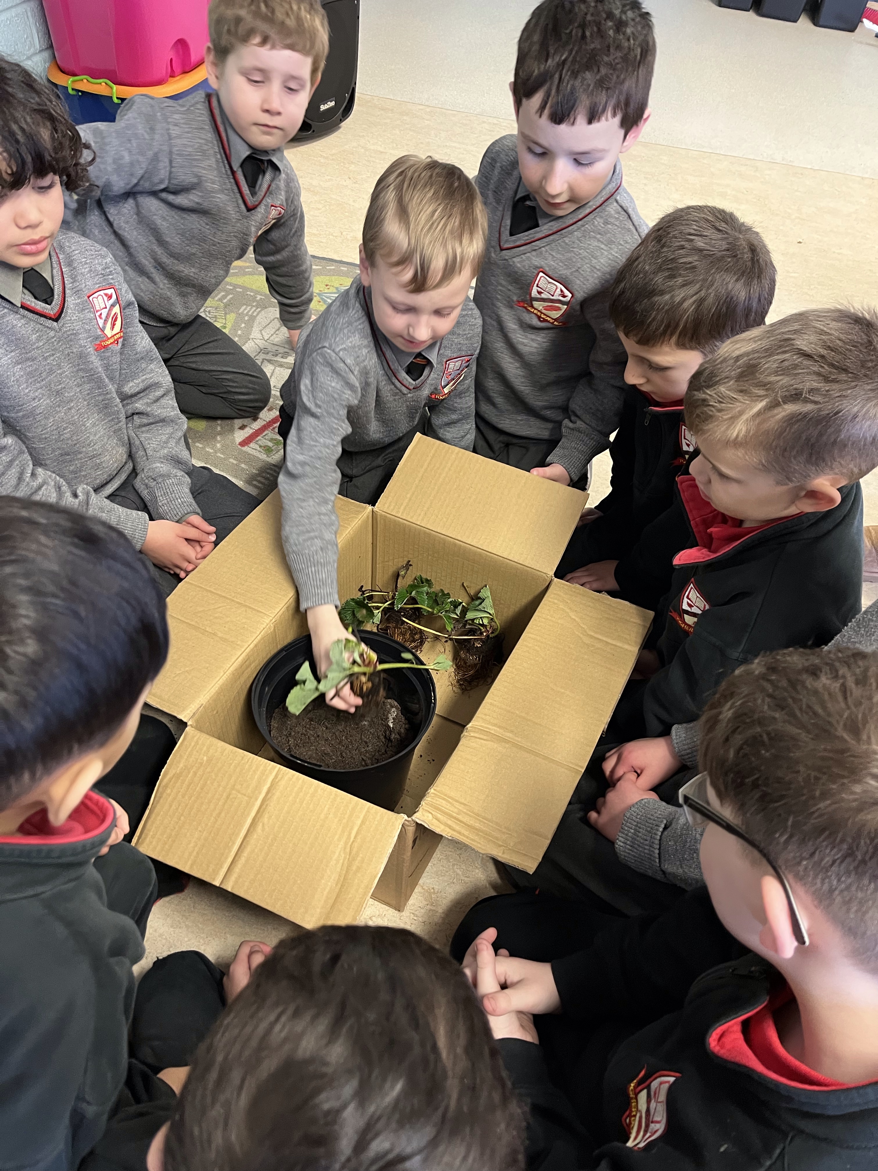 The boys in Ms Jennings’ class have been really busy the past few weeks – a nature walk, gymnastics and lots of lovely art. We have also planted our own potatoes and strawberries!