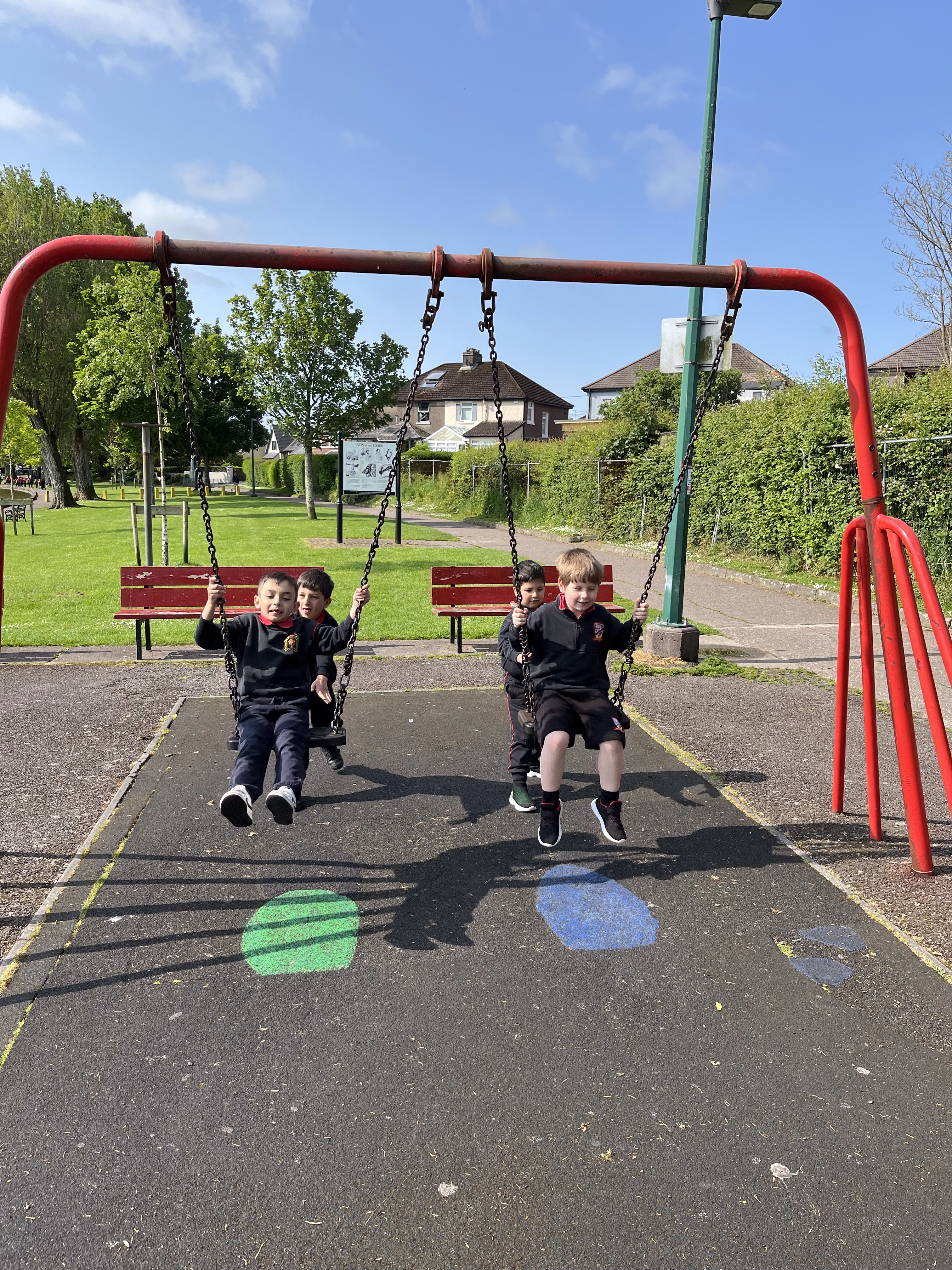 What a busy week we are having in Senior Infants! We were so lucky to have Garda Dave give us a spin to the Lough in the community bus. We had a picnic and got to see all the swans and ducks. On our way back to school we stopped off in the playground for even more fun. There was lots of teamwork with boys pushing each other on the swings and helping to spin the roundabout.