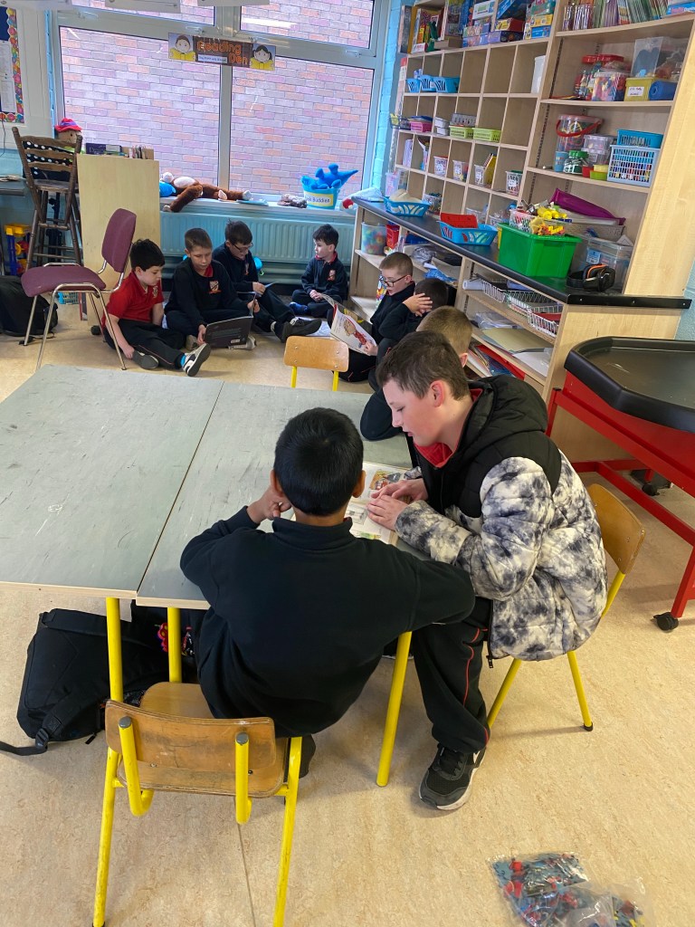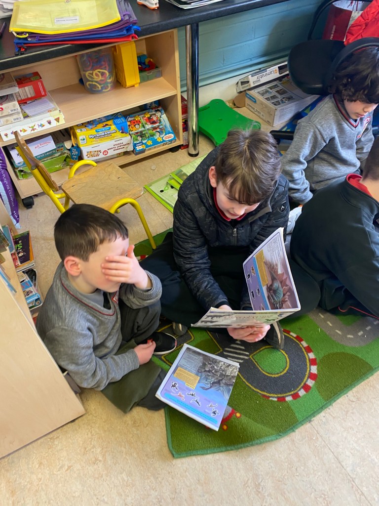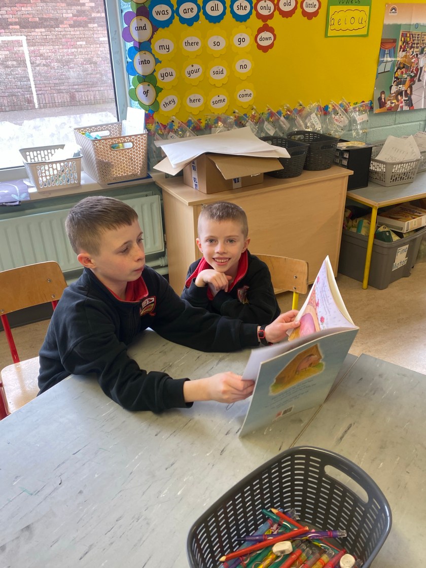 5th Class boys recently visited the infants corridor to read stories and share their experience with the younger boys. These boys are great role models for the younger classes and they are always setting a fantastic example