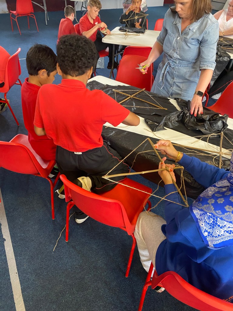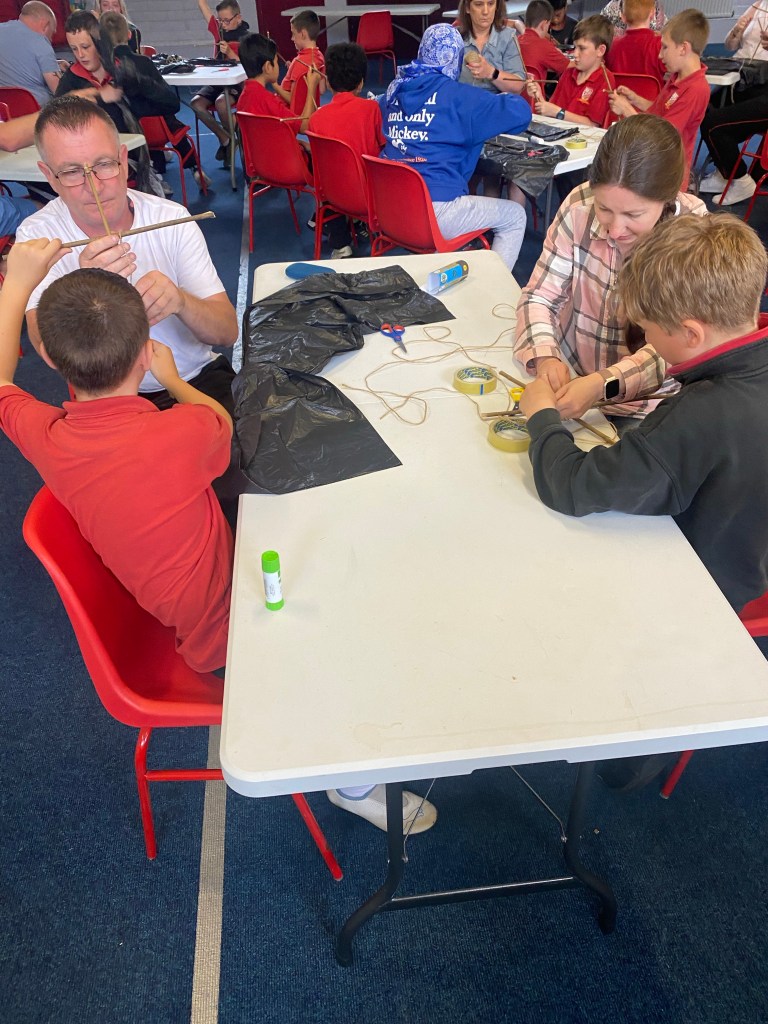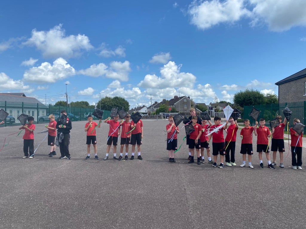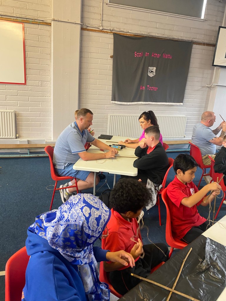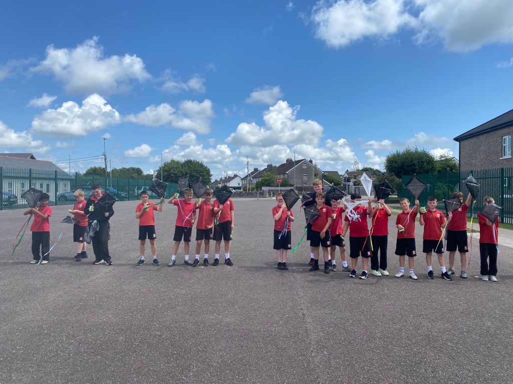 Recently Miss Manning, the Home School link, organised a fantastic event involving parents and students. Senan, who’s son Kerem is in 5th class gave a workshop on kite-making in the halla. Parents, siblings and the boys of 5th class worked together to make some fabulous kites.