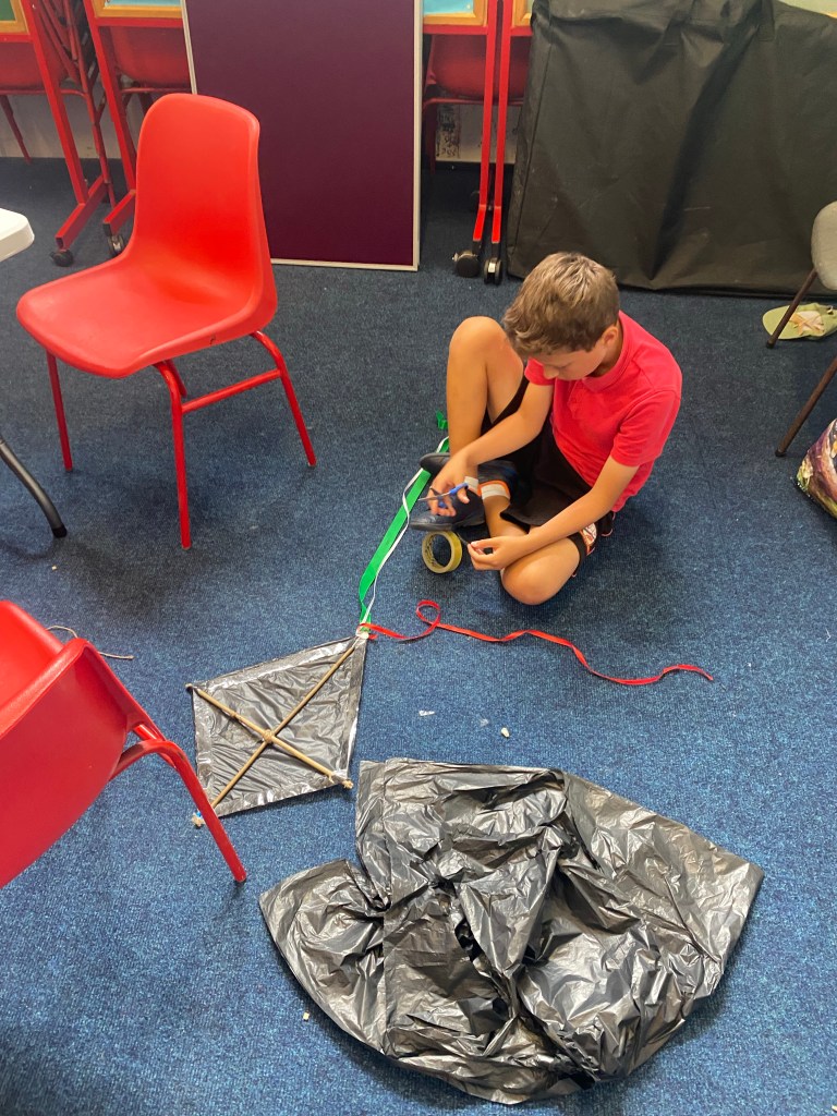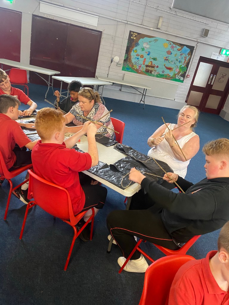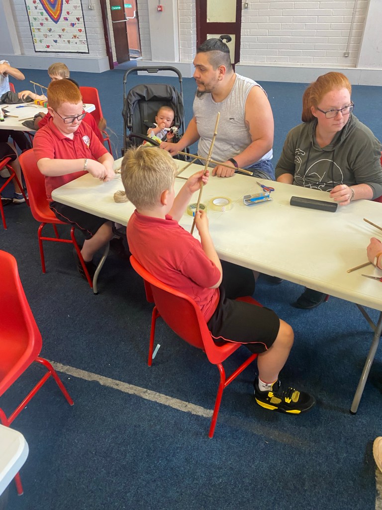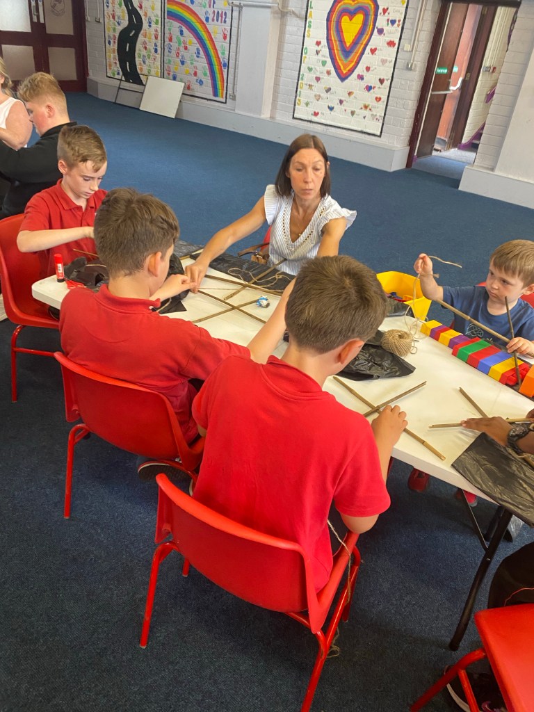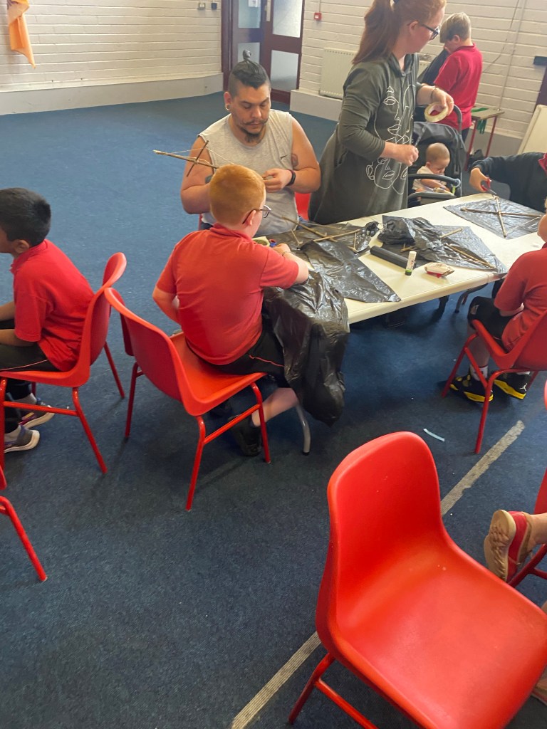 Recently Miss Manning, the Home School link, organised a fantastic event involving parents and students. Senan, who’s son Kerem is in 5th class gave a workshop on kite-making in the halla. Parents, siblings and the boys of 5th class worked together to make some fabulous kites.